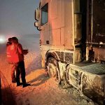 Van’ın Çaldıran ilçesi Tendürek Geçidi’nde etkili olan yoğun kar yağışı ve tipi nedeniyle mahsur kalan tır şoförlerinin yardımına Kızılay Muradiye Şubesi ekipleri koştu. Zorlu hava şartlarına rağmen gece boyunca sahada görev yapan Kızılay ekipleri, Tendürek yolunda ilerlemekte güçlük çeken tır şoförlerine sıcak çay ve çeşitli ikramlarda bulundu. Yoğun kar ve tipi altında gerçekleştirilen çalışmalarda, sürücülerin temel ihtiyaçları karşılanarak moral ve motivasyon desteği sağlandı.