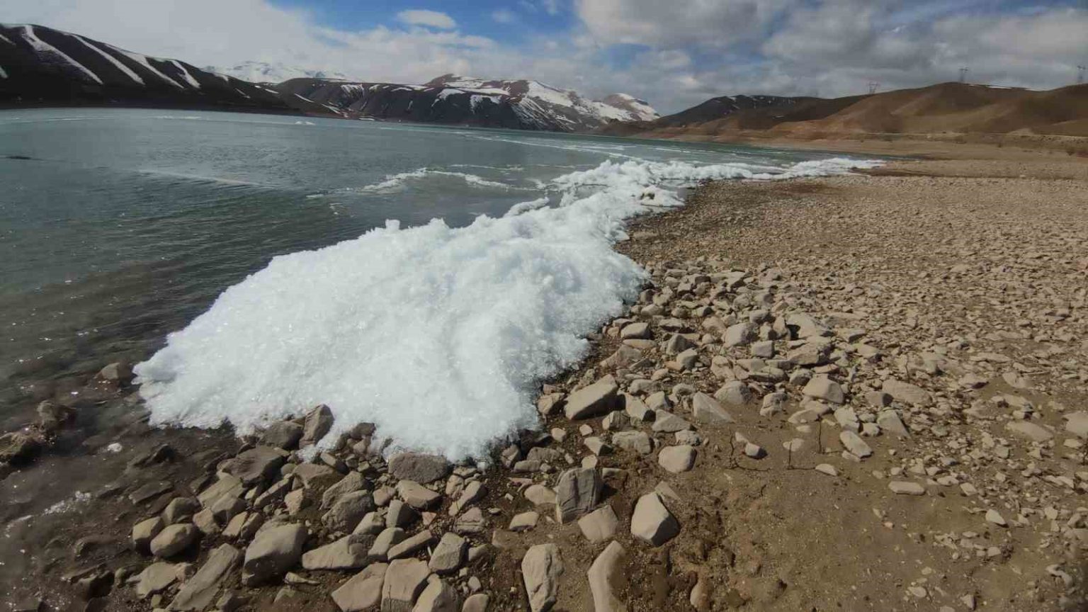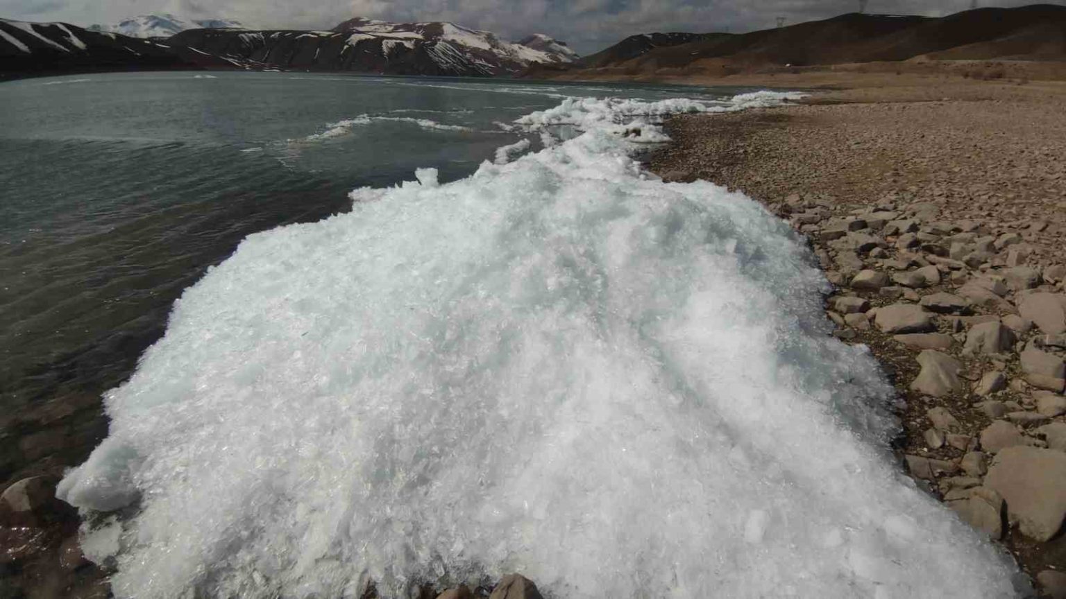 Doğu Anadolu Bölgesi’ni etkisi altına alan Sibirya kökenli soğuk hava dalgası, Van’da hayatı durma noktasına getirirken, ilginç görüntüler oluşturdu. Gürpınar ilçesinde bulunan ve bölgenin sulama ihtiyacını karşılayan Zernek Baraj Gölü, hava sıcaklığının gece sıfırın altında düşmesiyle tamamen buz tuttu. Göl yüzeyindeki suyun sadece yüzeyi donmakla kalmadı; rüzgarın etkisiyle kıyıya vuran dalgalar donarak kristalleşti. Ortaya çıkan manzara görsel şölen oluşturdu.