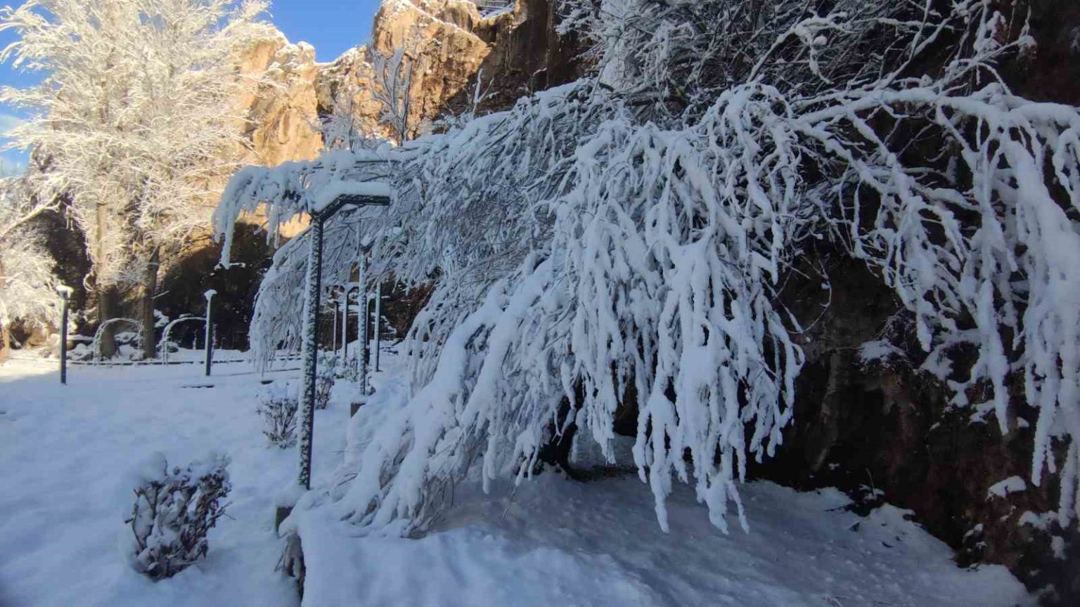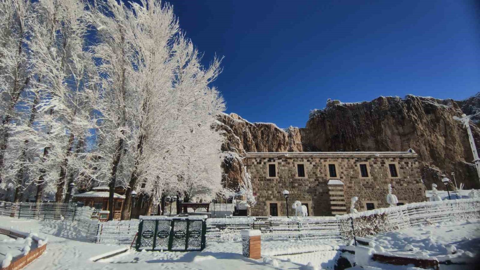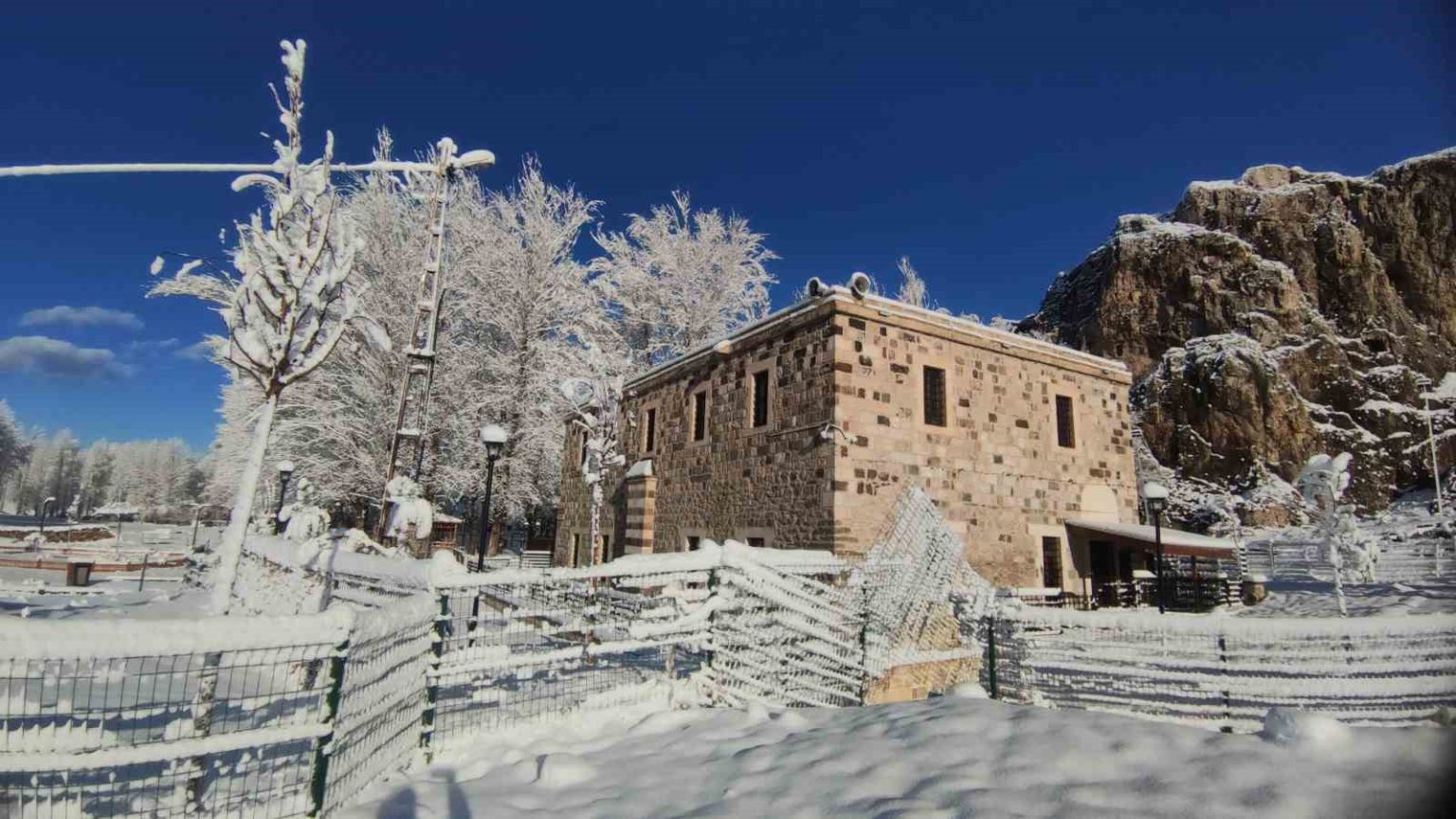 Doğu Anadolu’nun incisi Van’da, gece saatlerinde başlayan ve etkisini giderek artıran kar yağışı, şehri adeta bir masal diyarına çevirdi. Sabahın ilk ışıklarıyla ortaya çıkan görüntüler, vatandaşlara seyir zevki yüksek kareler sundu. Gece yarısı başlayan yağışla birlikte ağaçlar kar çiçekleri açarken, tarihi ve turistik mekanlar beyaz örtüyle kaplandı. Özellikle Van Kalesi güneyindeki tarihi Husrev paşa Külliyesi, Horhor Camii ve ağaç dallarında biriken karlar, sessizliğin hakim olduğu alanda estetik bir dokunuş kattı.