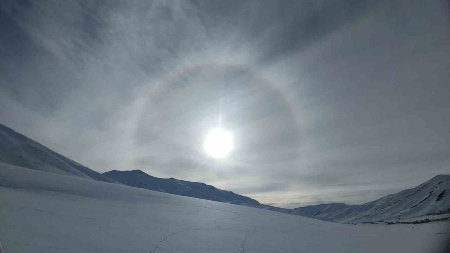 Van semalarında nadir görülen ve halk arasında “Güneş Halkası” olarak bilinen doğa olayı gerçekleşti. Gökyüzüne bakanlar, güneşin etrafını çember şeklinde saran renkli hale ile karşılaştı.