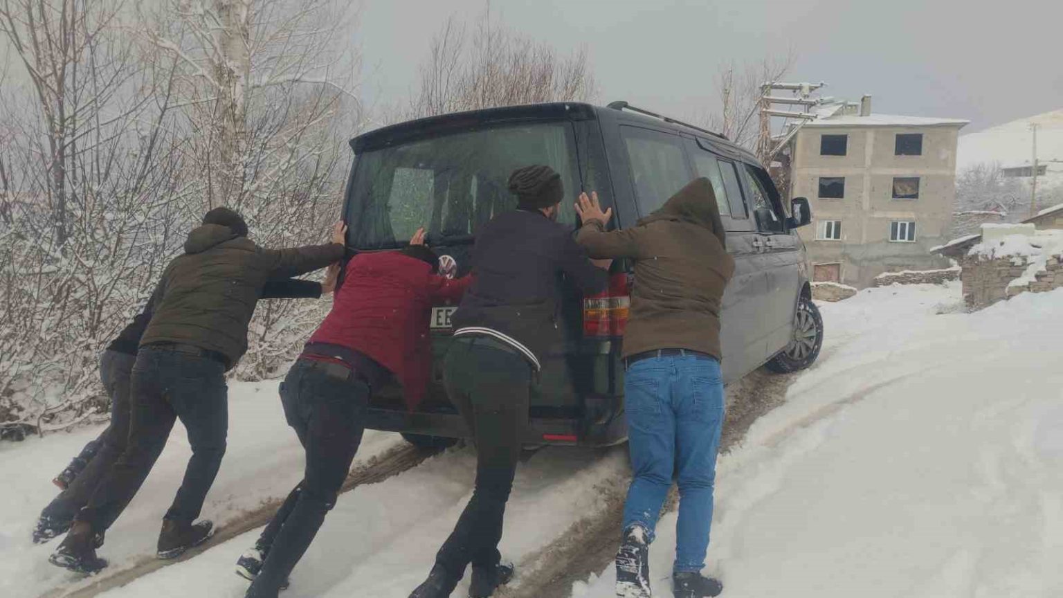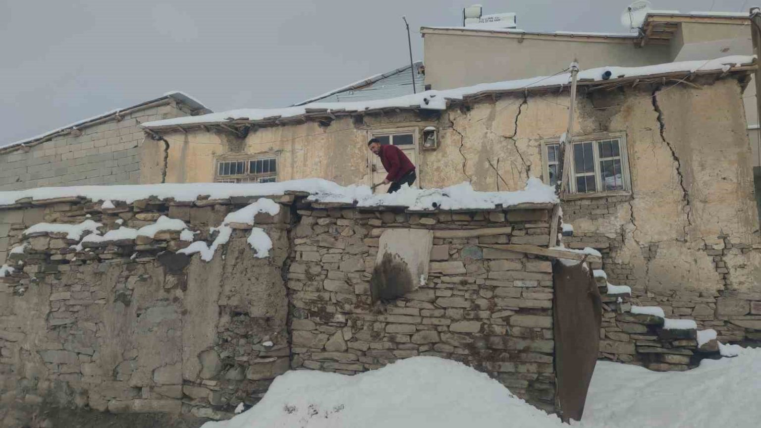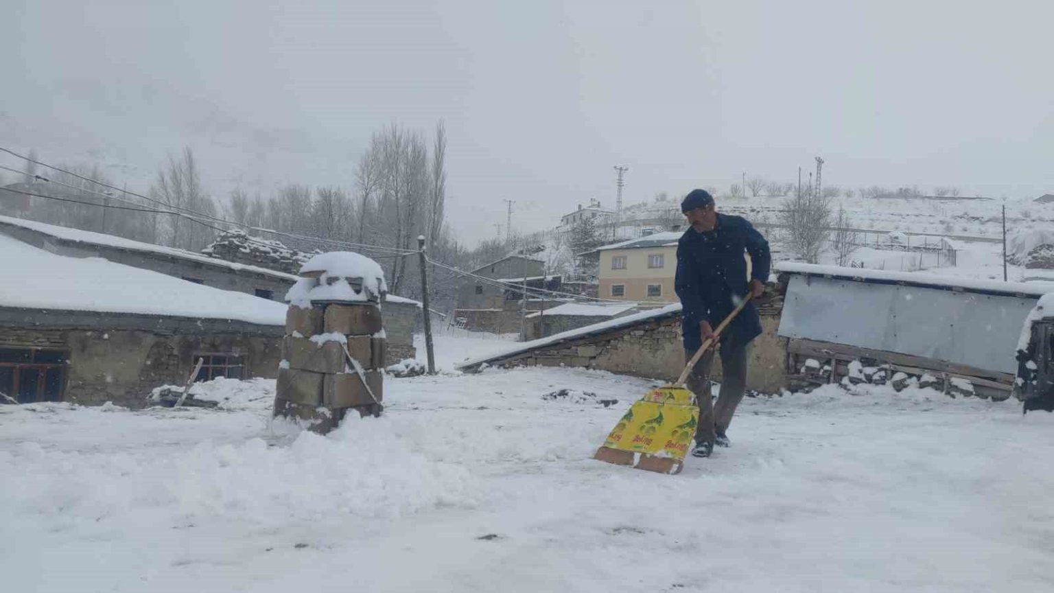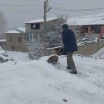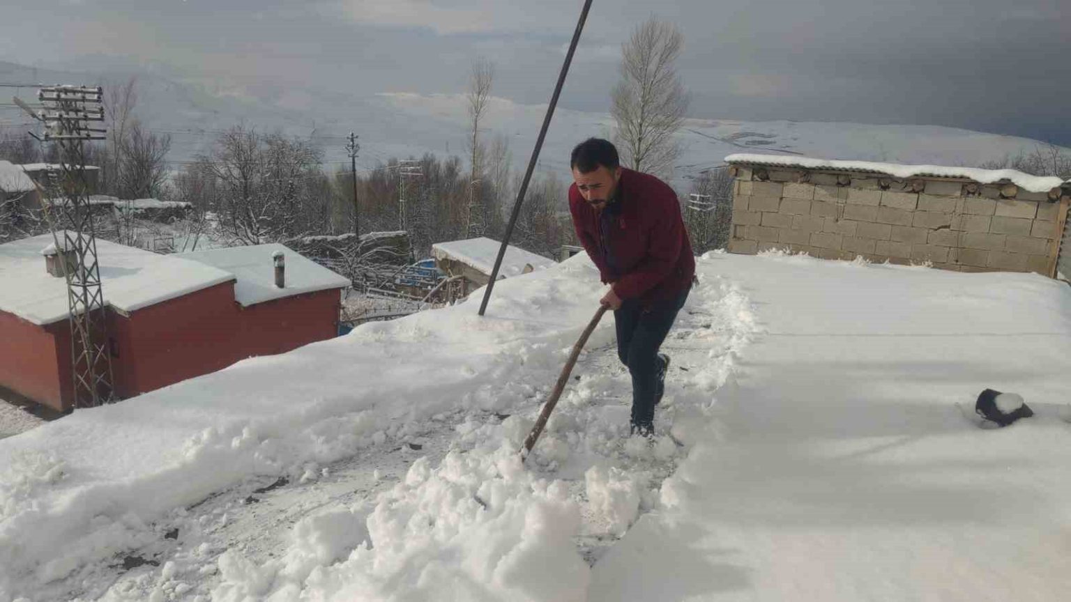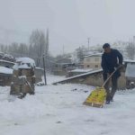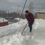 Mahalle sakinlerinden Sarkan Başlak, “Bu sabah çarşı merkezinden geldim. Merkezde yağmur yağıyordu. Belediye otobüsüyle geldik kardan dolayı yolda mahsur kaldık. Yolun geri kalan kısmını yaya olarak geldik. Şu anda damlarımızı süpürüyoruz” dedi.
