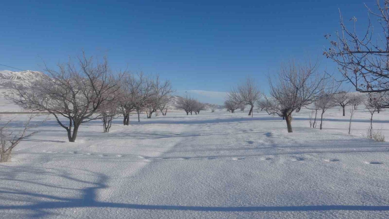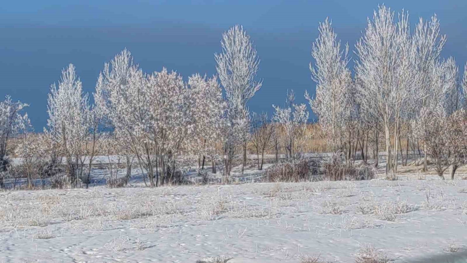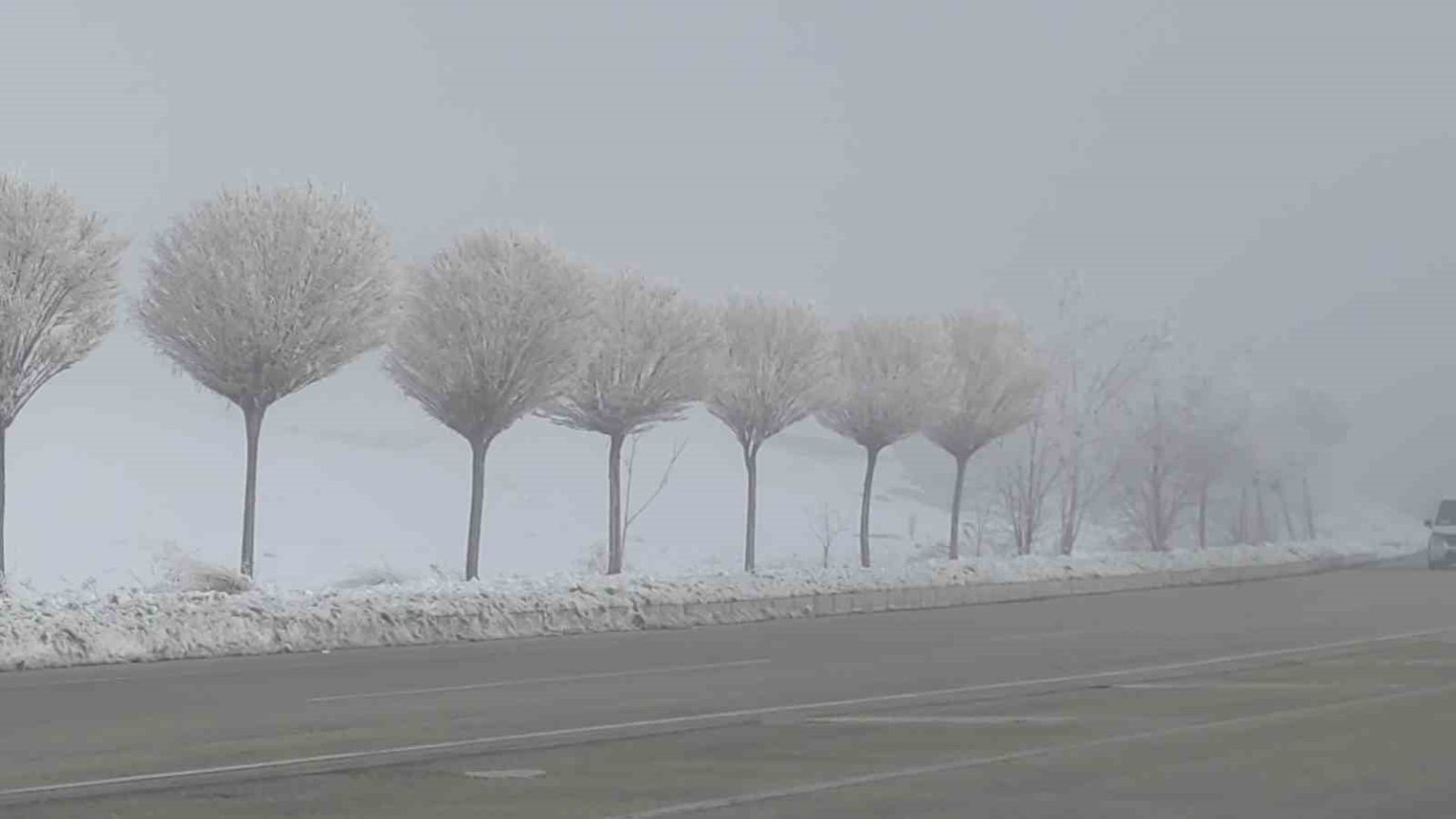 Van’da dondurucu soğuklar, tabiatı adeta beyaz bir örtüyle süslerken, gece hava sıcaklığının gece sıfırın altında düşmesiyle ağaçlar kırağı tuttu.