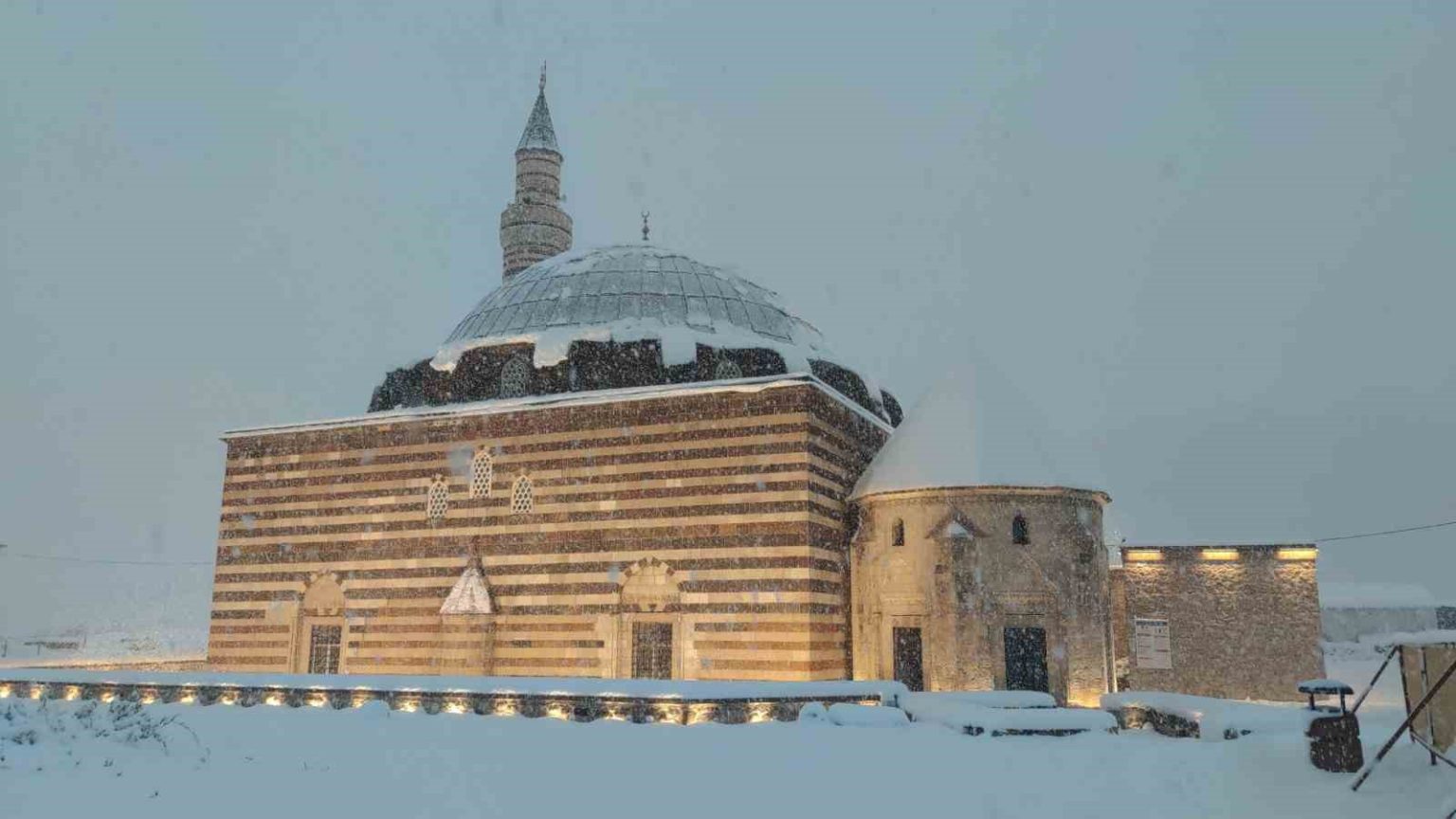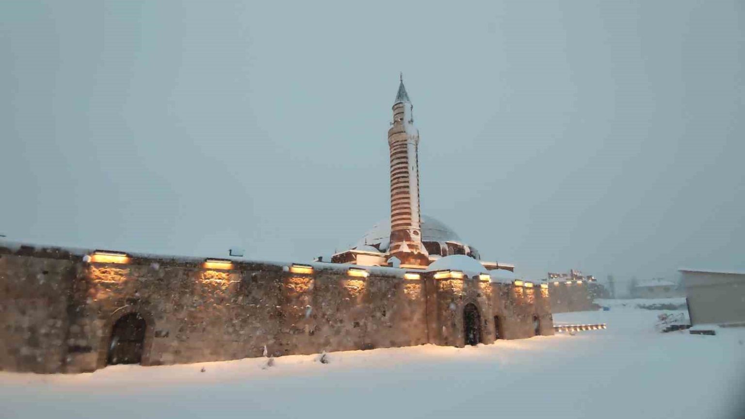 Mimar Sinan’ın Van’daki tek eseri olma özelliğini taşıyan Hüsrev Paşa Camii’nin kubbe ve avlusu karla kaplanırken, taş işçiliği karın beyazlığıyla daha da belirgin hale geldi. Kentin önemli ibadet ve tarih merkezlerinden biri olan Horhor Camii ise çevresindeki sokaklarla birlikte sakin ve huzurlu bir atmosfere büründü. Kar yağışının ardından ortaya çıkan bu manzaralar, vatandaşlar ve fotoğraf tutkunları tarafından ilgiyle izlendi. Tarihi camiler, kış mevsiminin zarafetiyle birleşerek Van’ın kültürel mirasına ayrı bir güzellik kattı.