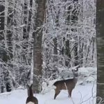 Sakarya’nın Geyve ilçesinde kar yağışı nedeniyle yiyecek bulmakta güçlük çeken yaban hayvanları için doğaya yem bırakan vatandaş, iki geyikle karşılaştı.