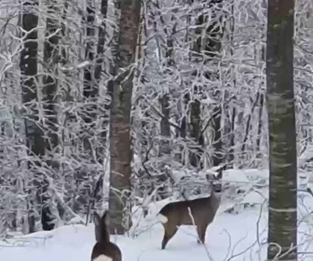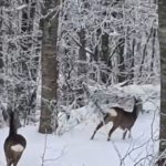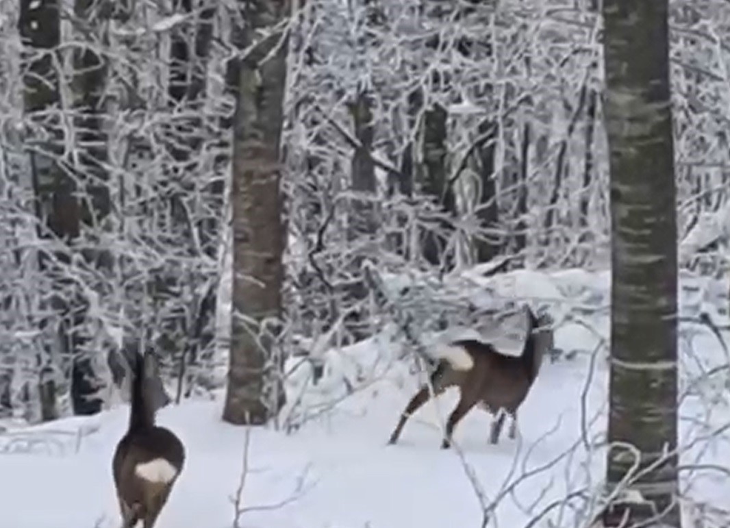 Görüntülerde, vatandaşın seslendiği geyiklerin bir süre sonra ormanlık alana girerek gözden kaybolduğu yer alıyor.
