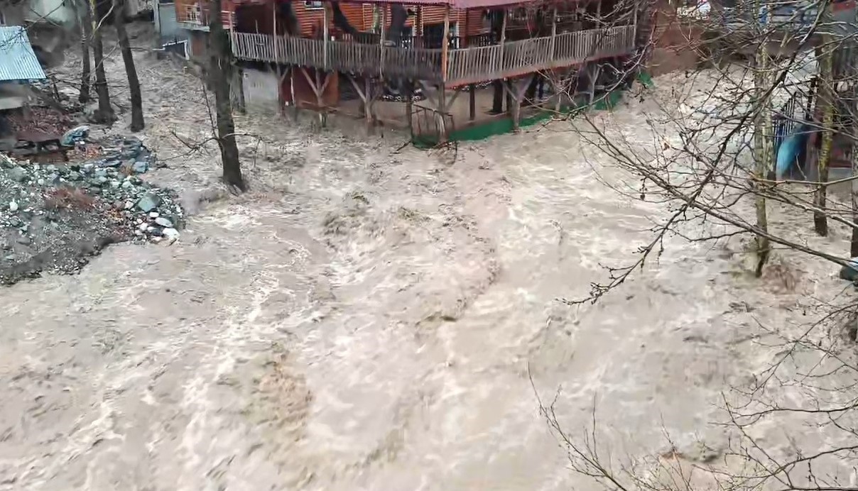 Kayseri’nin Yahyalı ilçesinde etkili olan yağışların ardından dere yatağında taşkınlar meydana geldi. Bazı evleri ve işletmeleri su basarken sele ait yeni görüntüler ortaya çıktı.