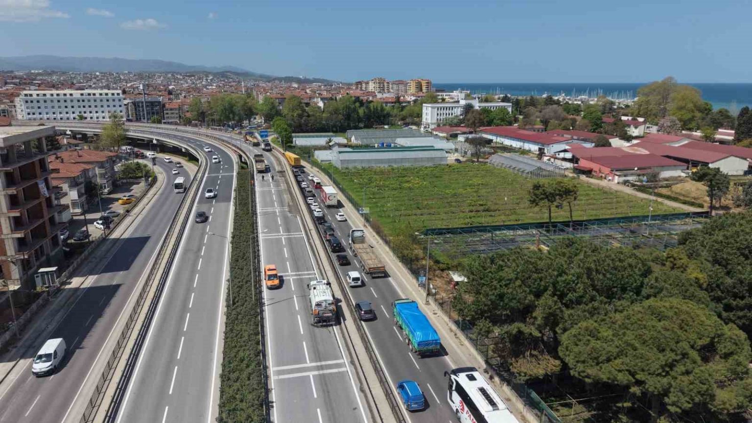 Kocaeli-Yalova ile Yalova-Bursa kara yolu sınırları arasında yer alan Tonami Köprülü Kavşağı’nda köprü genleşme derzi bakım ve onarım çalışmaları bugün itibarıyla başladı. İki hafta sürecek çalışmalar nedeniyle ilk etapta kavşağın Bursa istikameti trafiğe kapandı. Yolun trafiğe kapanması nedeniyle İzmit’ten Bursa yönüne seyreden araçlar uzun kuyruk oluşturdu.