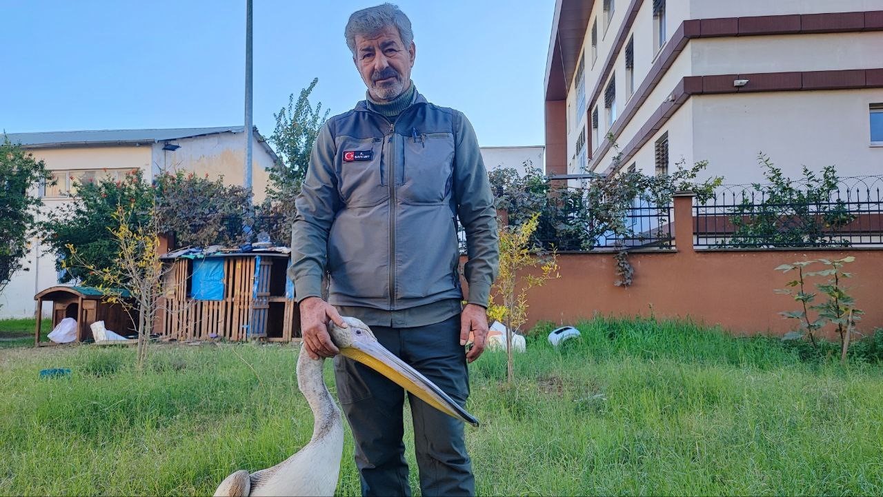 Yaralı pelikanı hem tedavi eden hem de onunla gece gündüz ilgilenip yemeğini yediren görevli Kazım Baykurt, hayvanın avcı kuşların saldırısına uğradığını, göğüs kısmında yara bulunduğunu ifade etti. Baykurt, tedavi sürecinde pelikanla aralarında özel bir dostluk oluştuğunu söyleyerek, “Yemeğini vermem nedeniyle aramızda bir bağ oluştu. Balıkla besliyoruz, akşamları da ilaçlarını veriyorum. Bana karşı hiç saldırgan değil. Hatta sakin ve uyumlu davranıyor” dedi.