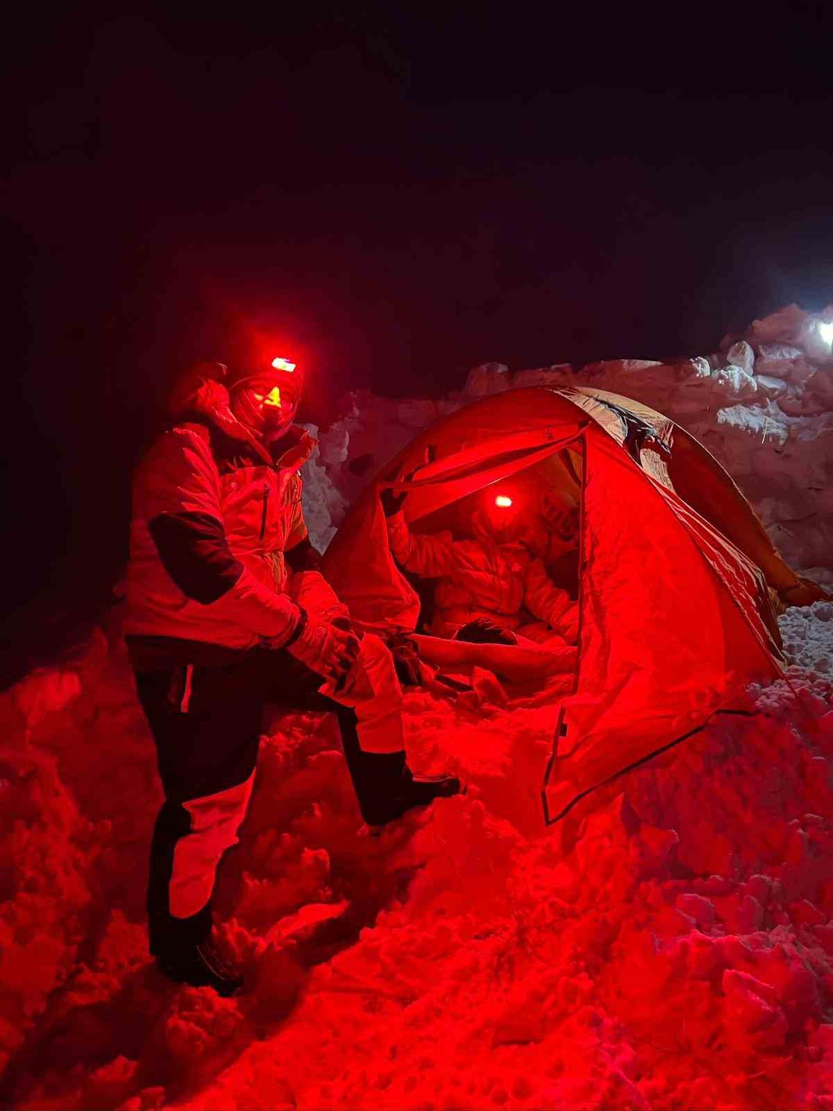 ELDAK’ın Hazar Baba Dağı’ndaki kış tırmanışında, yazın zirvede dalgalanan Türk bayrağının tamamen buz kestiği görüldü.