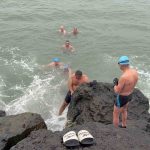 Hava sıcaklığının 1 dereceye kadar düştüğü, kar yağışını altında sabah saatlerinde Karadeniz’in buz gibi suyuna giren grup üyeleri, dakikalarca kulaç atarak yüzdü. Sahildeki vatandaşların şaşkın bakışları arasında denize giren Doğupark Tayfası, soğuk havaya rağmen keyifli anlar yaşadı.