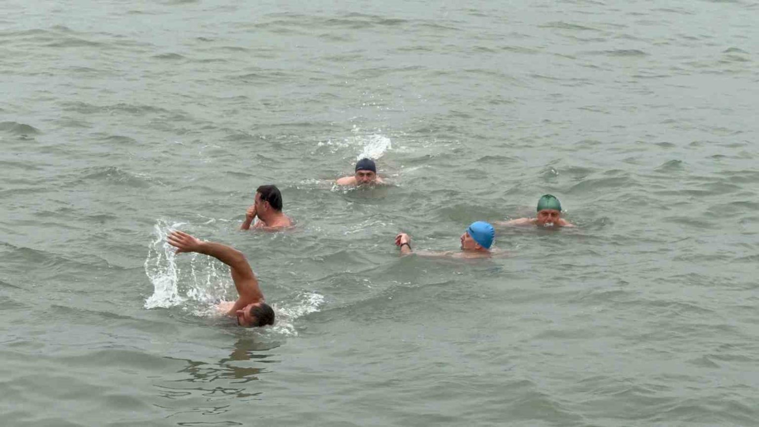 Yeni yılın ilk gününde buz gibi suda deniz keyfi