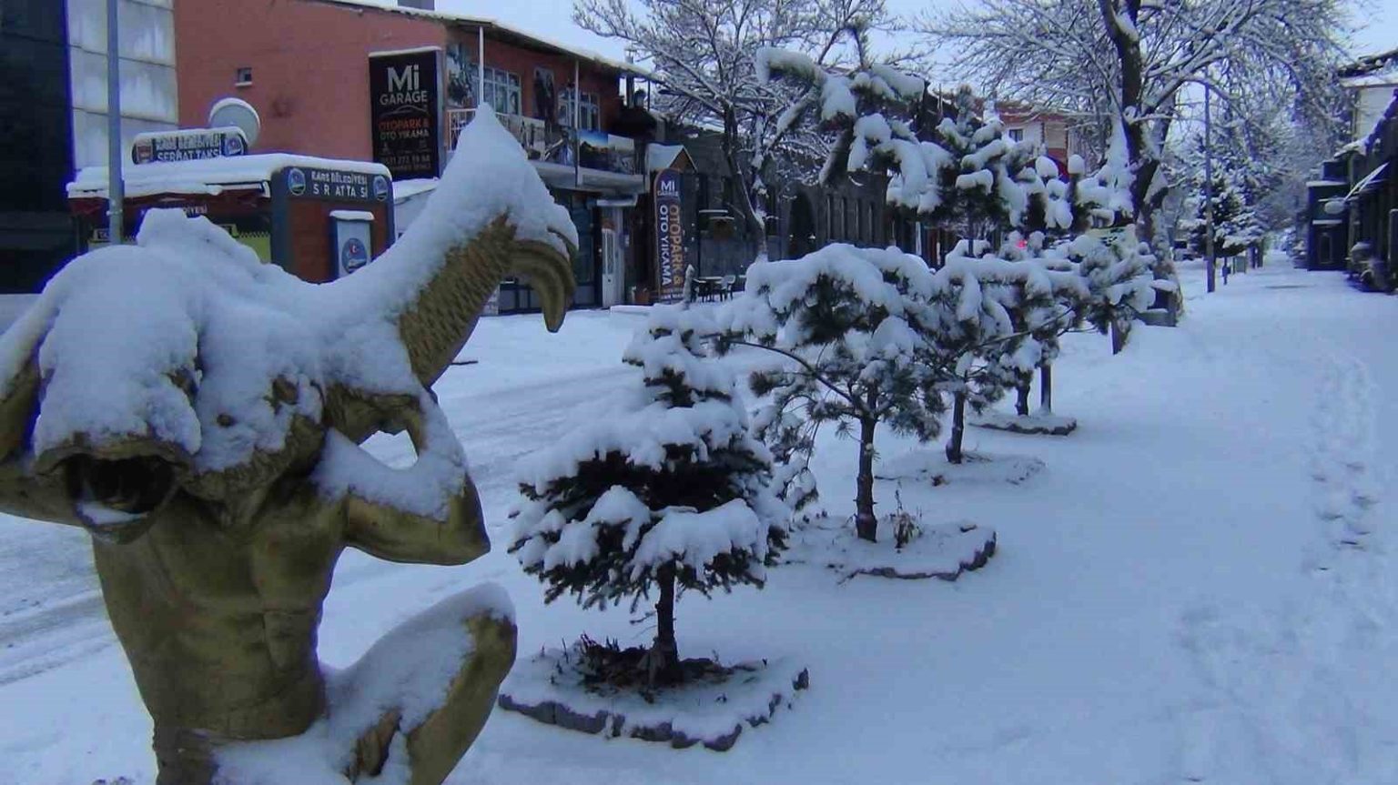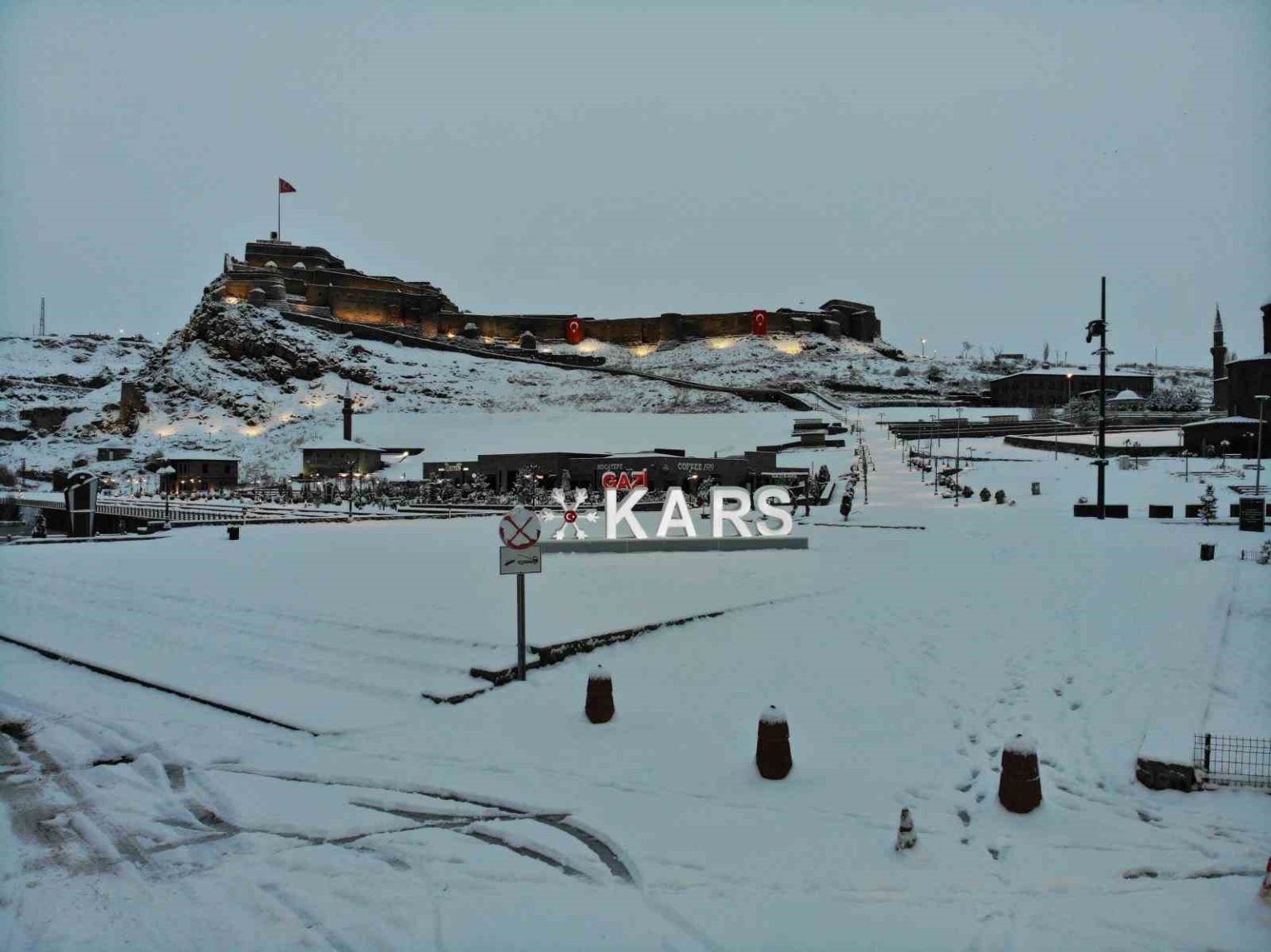 Öte yandan tarihi Kars Kalesi ve çevresindeki tescilli yapılar kar altında adeta birer kartpostallık görüntü oluşturdu. Ağaçların da beyaza bürünmesiyle birlikte Kars adeta görenleri büyüledi. Beyaza bürünen Kars İhlas Haber Ajansı (İHA) muhabiri tarafından dron ile havadan görüntülendi.
