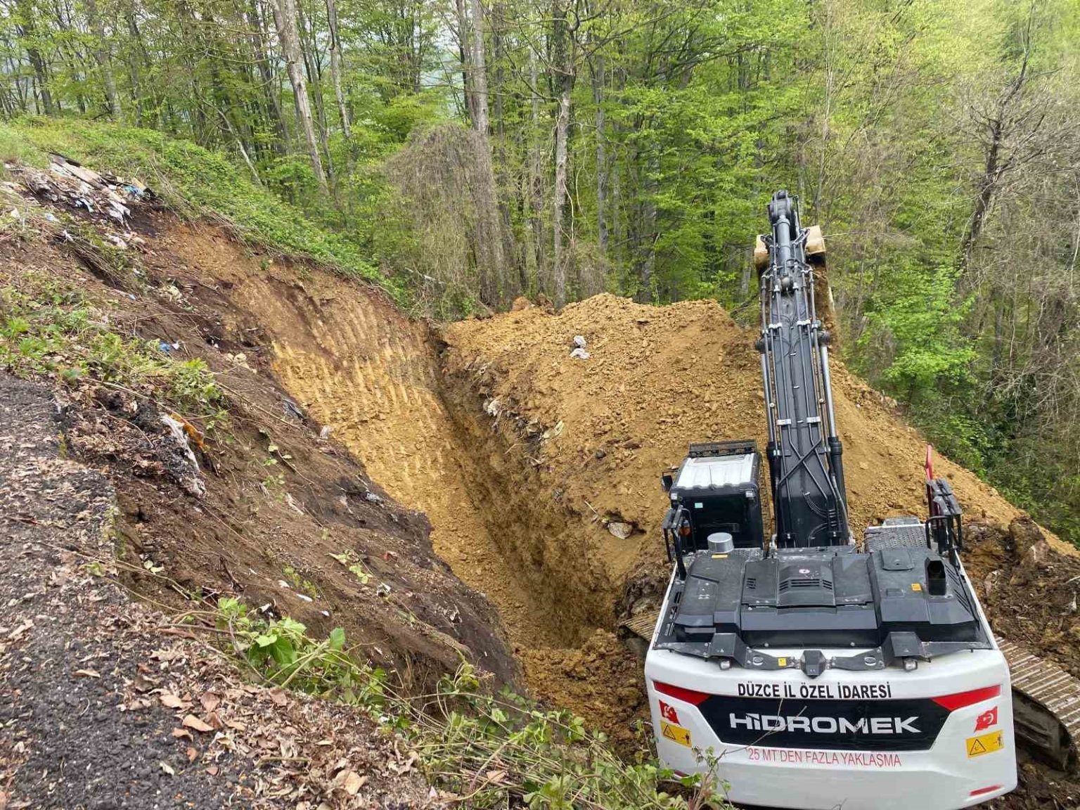 DÜZCE (İHA) – Düzce İl Özel İdaresi, Cumayeri ilçesine bağlı Yenitepe Köyü’nde meydana gelen heyelan sonrası bölgede stabilizasyon çalışmalarına başladı.