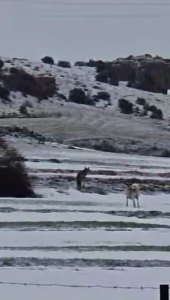 Son yılların en sert kışının yaşandığı Sivas’ta yabani bir kurt yerleşim yerine indi. Sabah saatlerinde Gemerek ilçesine bağlı Sızır Beldesi’ne inen bir kurt, beldedeki köpekleri harekete geçirdi. Beldede yaşayan Fazlı Ünal, köpeklerin havlaması üzerine dışarı çıktı. Kurdun beldede gezindiğini gören Ünal, o anları cep telefonu kamerası ile görüntüledi. Aç kaldığı ve yiyecek aradığı düşünülen kurdun yerleşim yerindeki rahat tavırları dikkat çekti. Bir süre gezinen kurt, daha sonra gözden kayboldu.