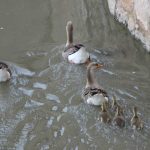 Amasya’da 4 küçük kaz yavrusu Yeşilırmak Nehri’nin maskotu oldu. Sevimli kazlar beslenme saatlerini aksatmıyor.