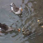 Yeşilırmak Nehri’nin maskotu kaz yavruları beslenme saatinde