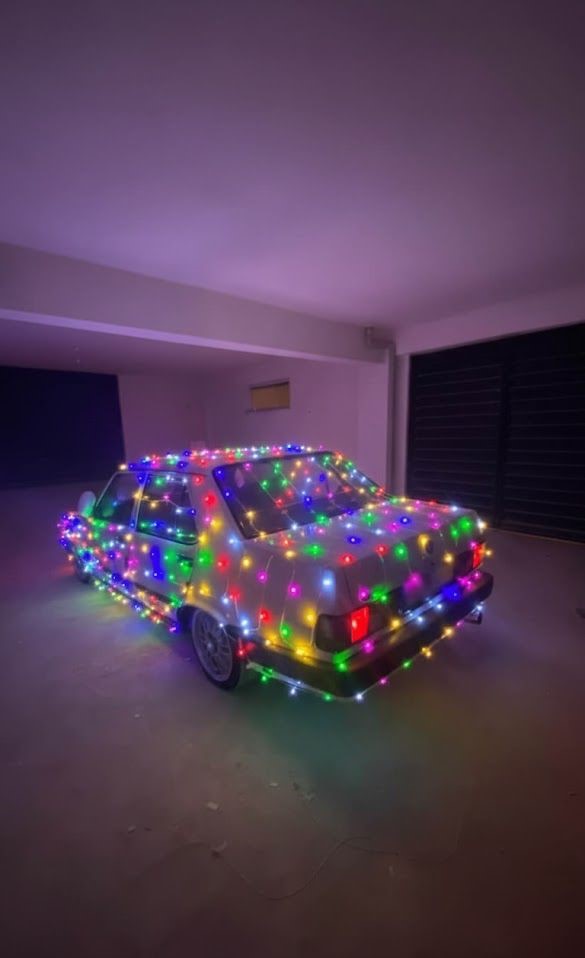 Eskişehir’de bir sürücü, 2025 yılının son gününde aracını boydan boya ışıklarla süsledi.