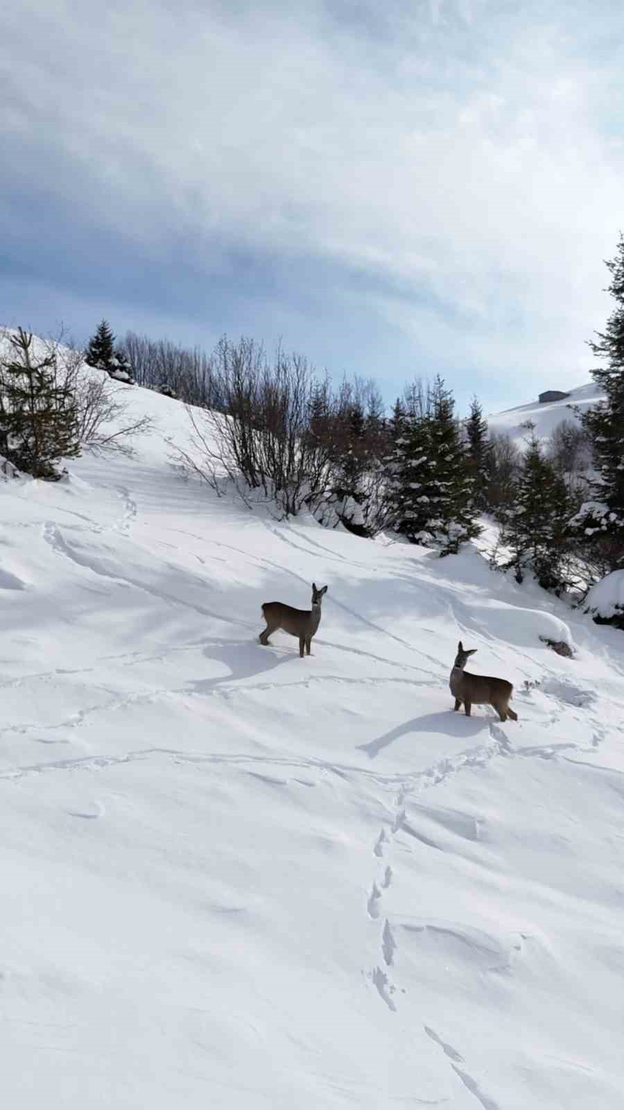 Yiyecek arayan karacalar Kulakkaya Yaylası’nda görüntülendi