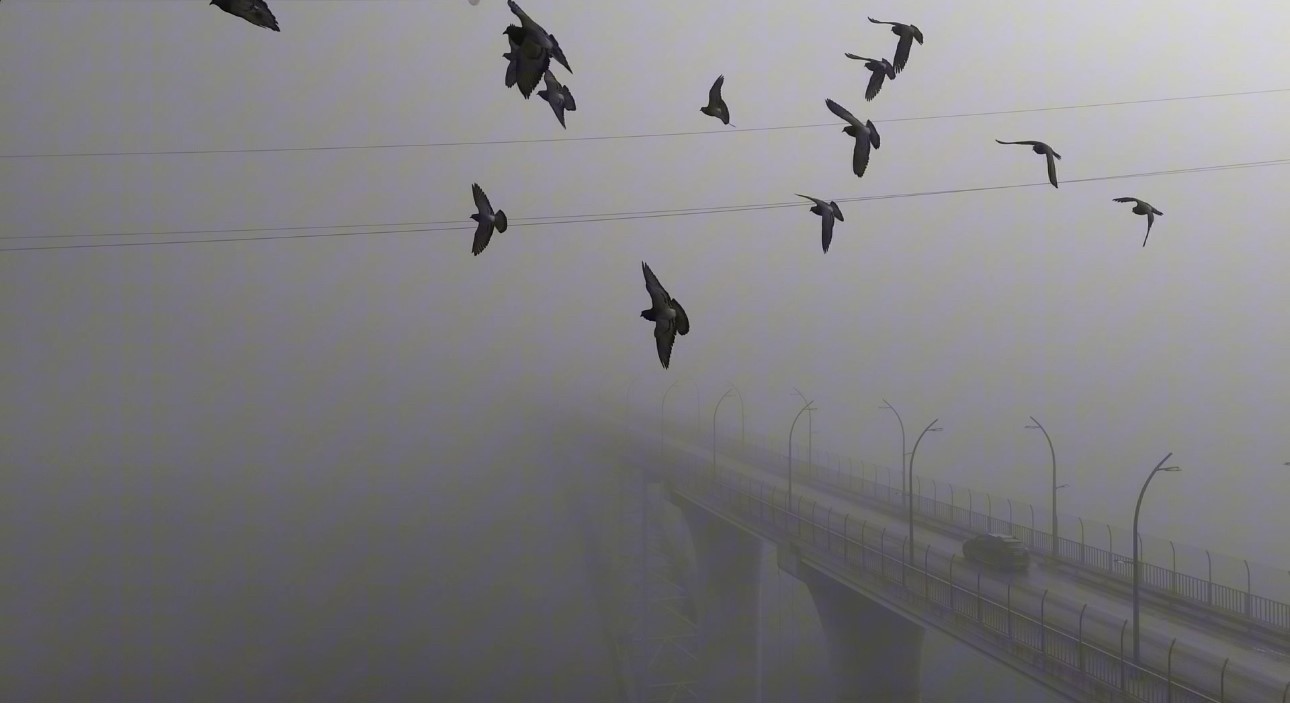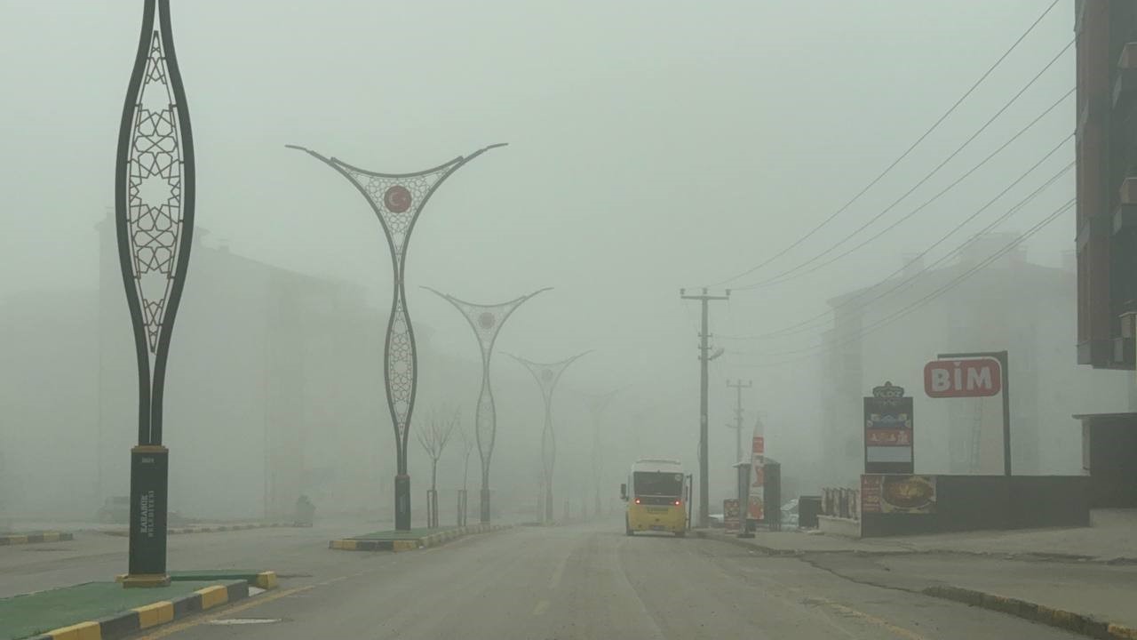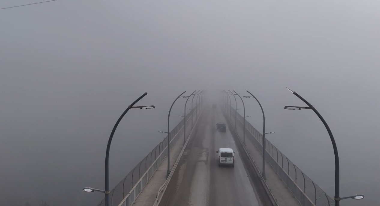 Yoğun sisten kaybolan yapılar dronla görüntülendi