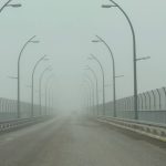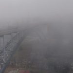 Sis bulutlarıyla bütünleşen köprü manzarası havadan görüntülendi.