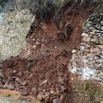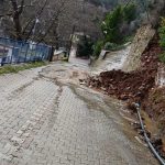 Aydın’ın Karacasu ilçesinde etkili olan sağanak yağış sebebiyle istinat duvarı çökerken, yollarda da çukurlar meydana geldi.