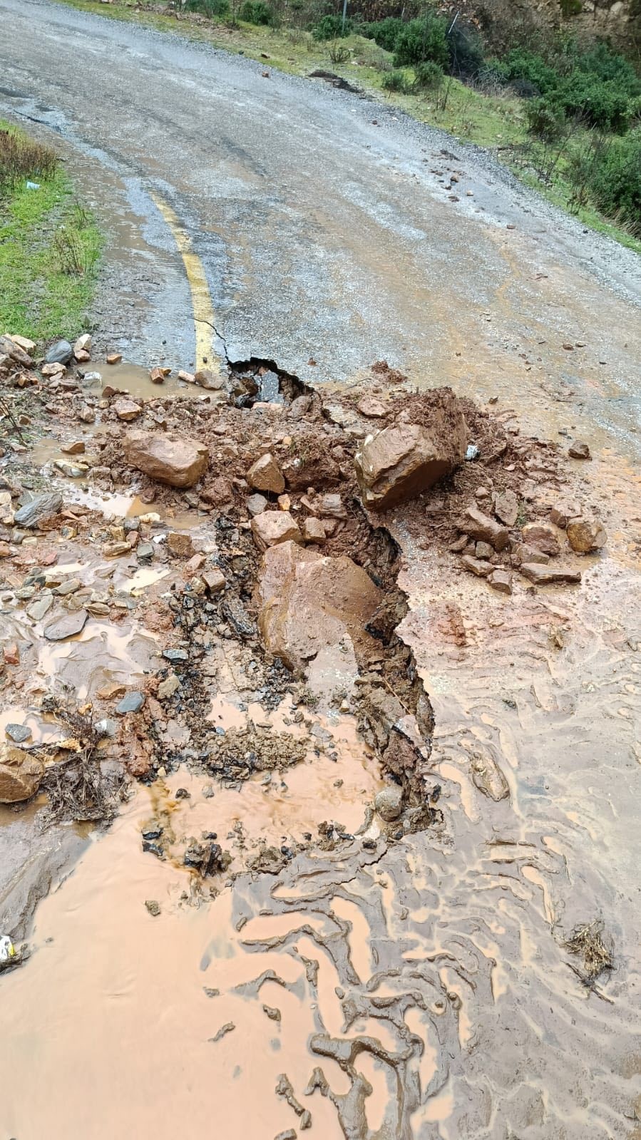 Aydın genelinde etkili olan sağanak yağış hayatı olumsuz etkiledi. İl genelinde birçok kuruma bağlı ekipler olumsuzluklara karşı teyakkuzda beklerken, Karacasu ilçesinde de etkili olan yoğun yağış sonrasında toprağın yumuşaması sebebiyle istinat duvarı çöktü. Dağlardan akan çamur ve kaya parçaları sebebiyle de bazı yollar trafiğe kapanırken, yol kenarlarında çukurlar meydana geldi. İhbar üzerine bölgeye giden ekipler, olumsuzluklara müdahale ederken, şans eseri olaylarda can ve mal kaybı yaşanmadı. Sarı kod verilen Aydın genelinde yağışların hafta sonu da kuvettli sağanak yağış olarak etkisini sürdürmesi bekleniyor.