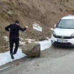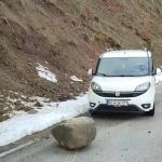 Tokat’ta seyir halindeyken yola düşen kaya parçası, vatandaşları dikkati ve duyarlı davranışı sayesinde tehlike oluşturmadan yol kenarına çekildi.