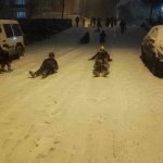 Yağan karla birlikte mahalle aralarında toplanan vatandaşlar, ellerine geçirdikleri çeşitli malzemelerle kayarak eğlenceli anlar yaşadı. Kimi zaman düşüp kalkan, kimi zaman da profesyonel kayakçıları aratmayan çocuklar, karın tadını çıkarırken renkli görüntüler ortaya çıktı. Çocukların eğlencesine büyüklerin de katılmasıyla mahalle yokuşları neşeli anlara sahne oldu.
