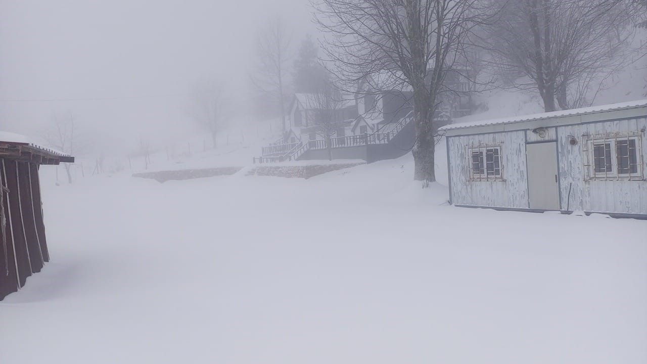 Yüksek kesimlerde 20 santimetreye ulaşan kar, ilçe merkezinde de yağmaya başladı