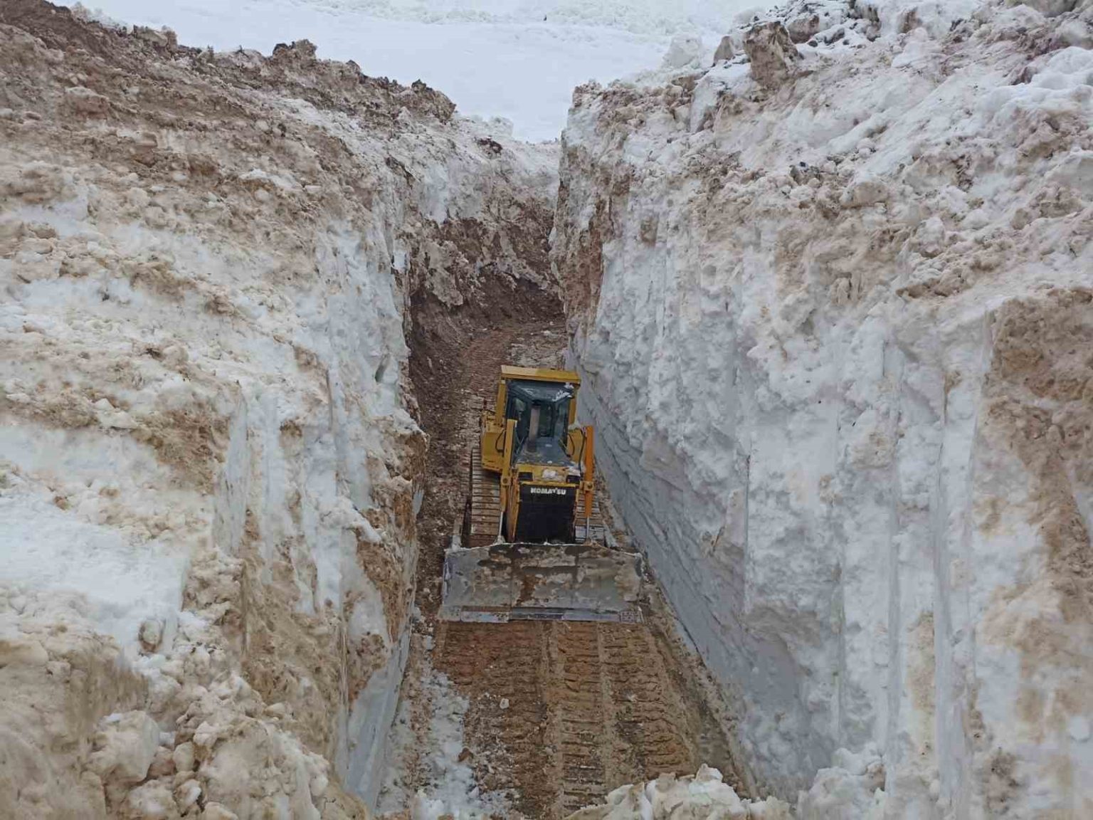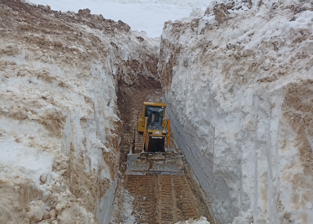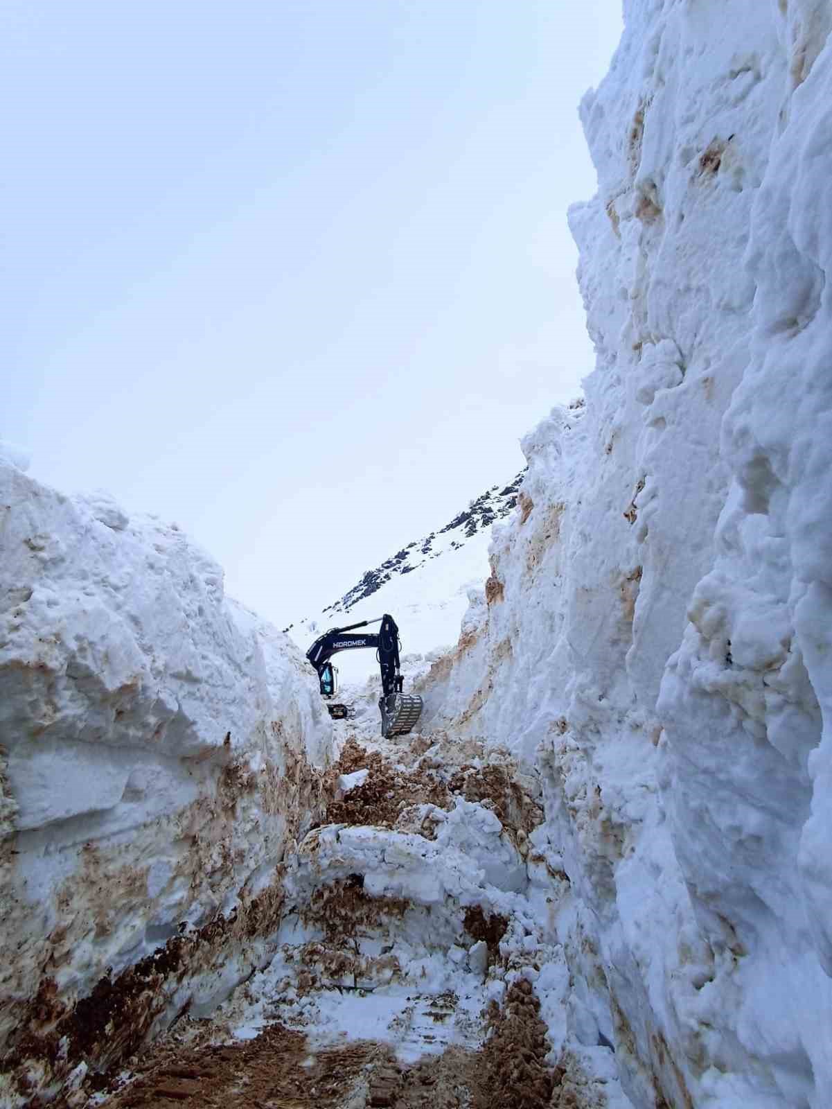Yüksekova ilçesinde nisan ayına yaklaşılırken kardan oluşan tüneller hayret içinde bırakırken, karla mücadele çalışmaları yoğun şekilde devam ediyor. İl Özel İdaresine bağlı Yüksekova Şantiyesi Şefliği ekipleri, ilçe merkezinde bulunan Doski bölgesi, İkiyaka Dağları ve Mergezer Yaylası yolunda çalışmalarını aralıksız sürdürüyor. Kardan oluşan tüneller ve 8 metreyi bulan kar kalınlığına karşı zaman zaman zor anlar yaşayan ekipler, kepçe ile açamadıkları yolda ekskavatör de kullanıyor. Kepçenin boyunu aşan karda ilerlemekte güçlük çeken ekipler, çığ tehlikesine rağmen çalışmalarına gece gündüz devam ediyor. Özellikle yüksek kesimlerde yaşayan vatandaşın mağdur olmaması için yoğun bir çalışma yürüten ekiplerin açtığı yollar ise tünelleri andırıyor.