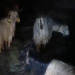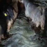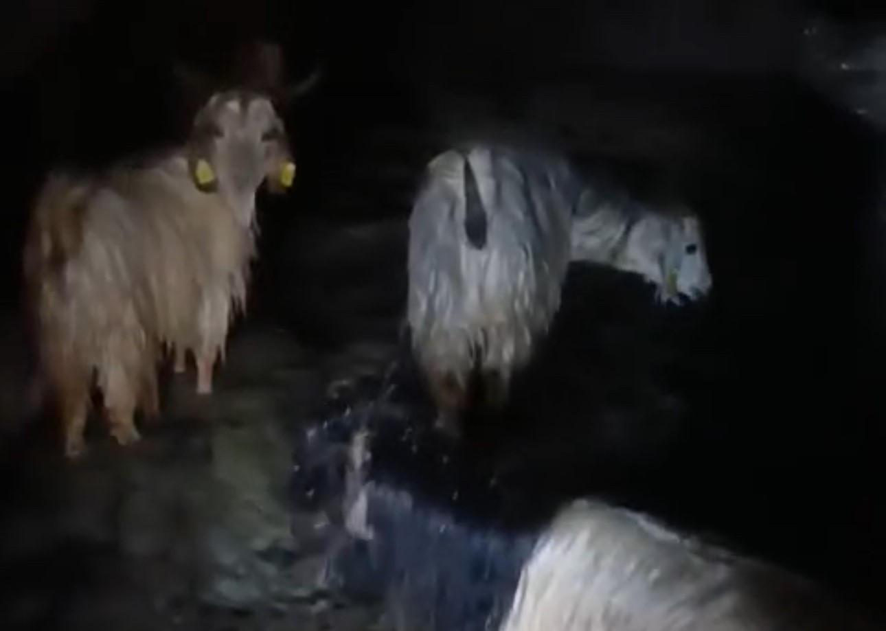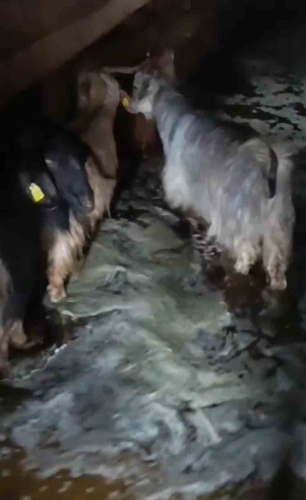Hakkari’nin Yüksekova ilçesinde etkili olan sağanak yağış nedeniyle suyla dolan ahırdaki hayvanlar kurtarıldı.