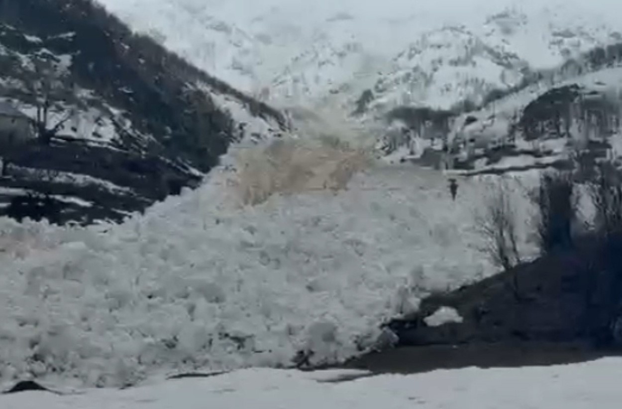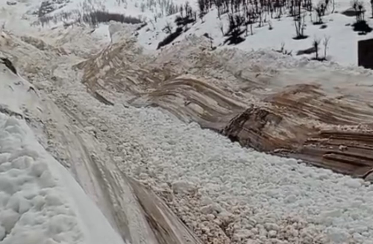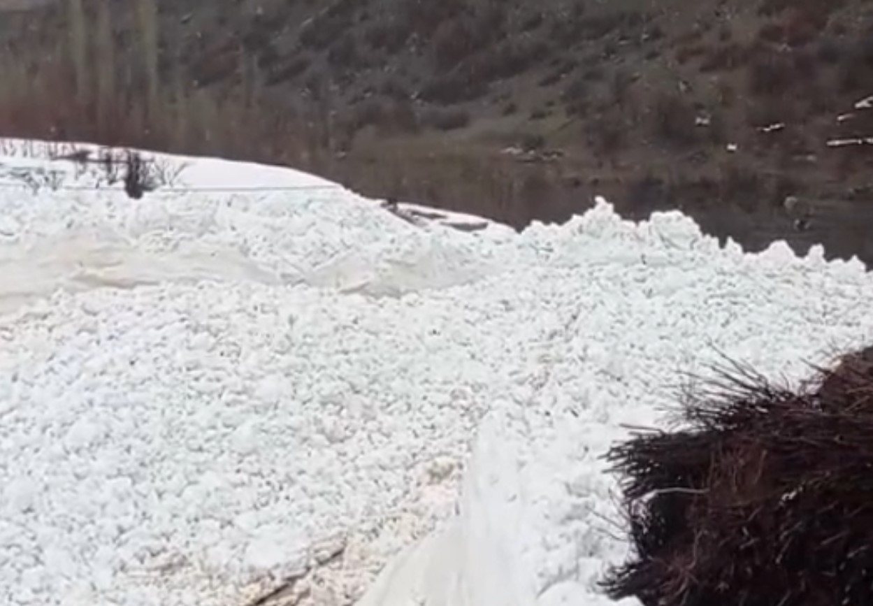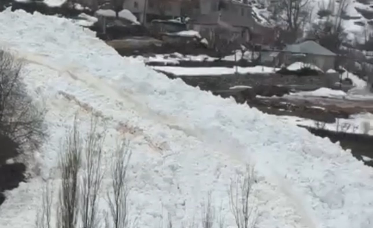 Hakkari’nin Yüksekova ilçesine bağlı Yeşiltaş köyünde yerleşim yerlerine yakın bir noktaya düşen çığ, korkuya neden oldu.