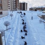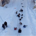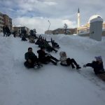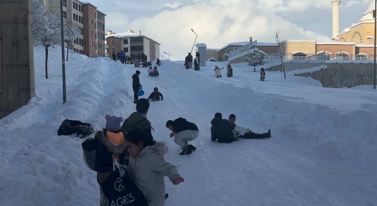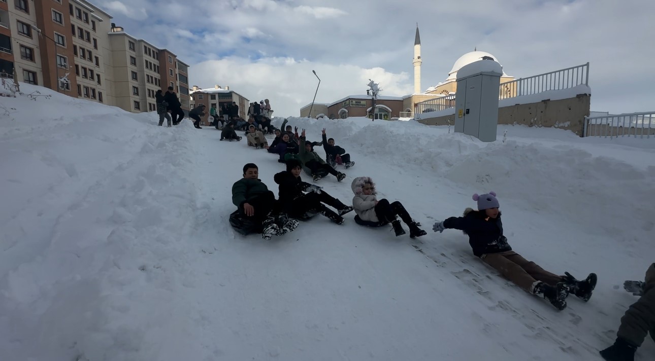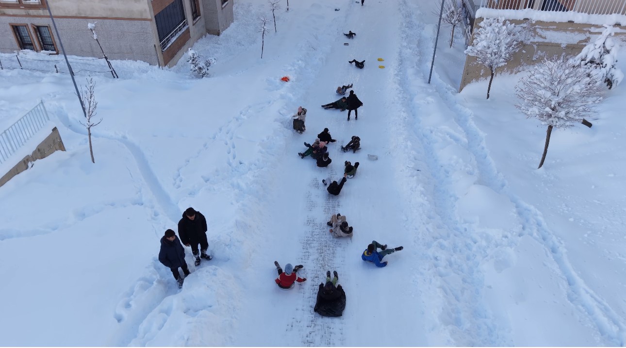 İlçe merkezinde üç gün boyunca etkili olan ve ulaşımda aksamalara neden olan kar yağışı, yerini güneşli havaya bıraktı. Yağışı eğlenceye dönüştüren çocuklar, Cumhuriyet Mahallesi’ndeki yokuşlu yollarda bir araya geldi. Kendi imkanlarıyla oluşturdukları pistte sıraya giren çocuklar; poşet, tahta, tepsi ve bidon gibi malzemeleri kızak olarak kullanarak gönüllerince eğlendi. Ailelerin de evlerinin pencerelerinden takip ettiği o anlarda renkli görüntüler oluştu.