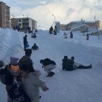 Hakkari’nin Yüksekova ilçesinde yoğun kar yağışının ardından güneşli havayı fırsat bilen yaklaşık 50 çocuk, mahalle yolunu pist alanına çevirerek evlerinden getirdikleri tepsi, bidon ve tahtalarla kaymanın keyfini yaşadı.