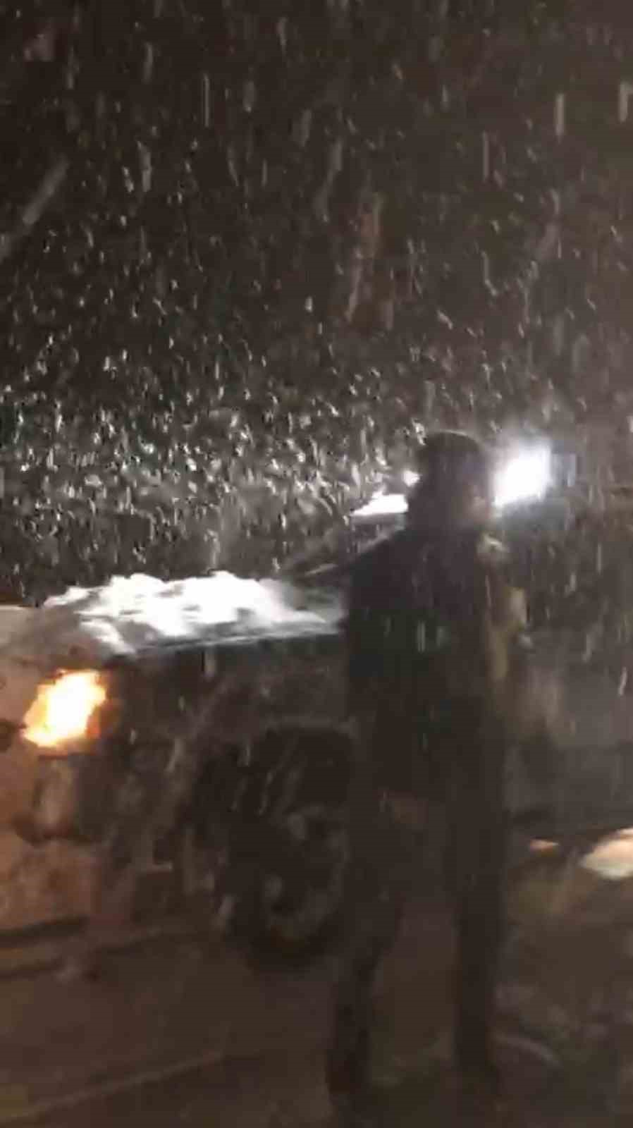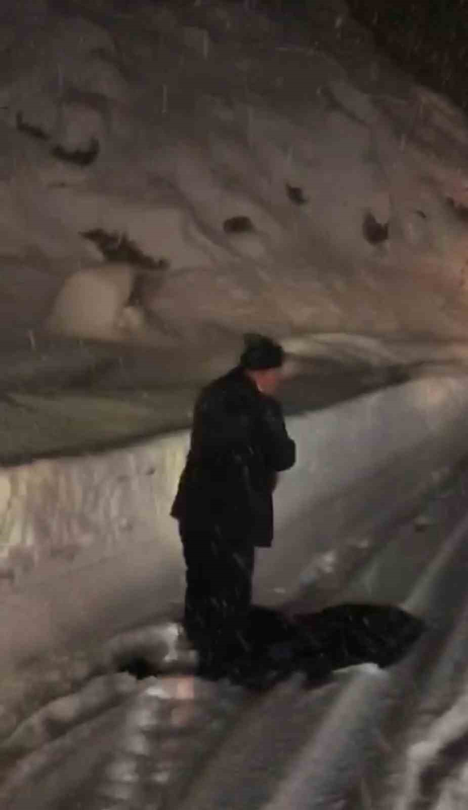 Hakkari’nin Yüksekova ilçesinde etkili olan yoğun kar yağışı ve tipi hayatı olumsuz etkilerken, karayolunda mahsur kalan bir vatandaşın fırtınaya rağmen namaz kıldığı anlar cep telefonu kameralarına yansıdı.