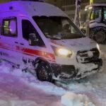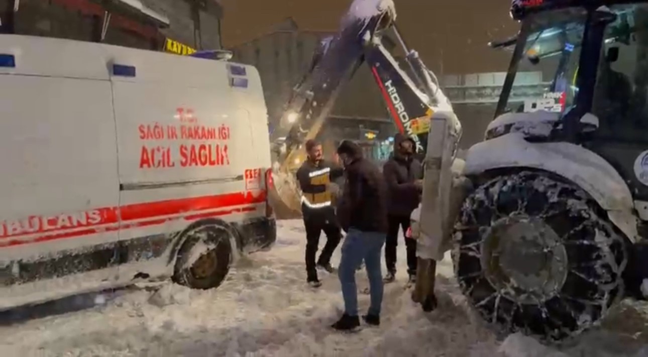 İlçe merkezindeki Cengiz Topel Caddesi üzerinde seyir halindeyken yoğun kar ve buzlanma nedeniyle kontrolden çıkan bir ambulans kara saplandı. Kendi imkanlarıyla kurtulamayan sağlık ekipleri, durumu yetkililere bildirerek yardım istedi. İhbar üzerine bölgeye sevk edilen İl Özel İdaresine bağlı karla mücadele ekipleri, iş makinesi yardımıyla yürüttükleri çalışma sonucu ambulansı saplandığı yerden çıkardı.