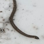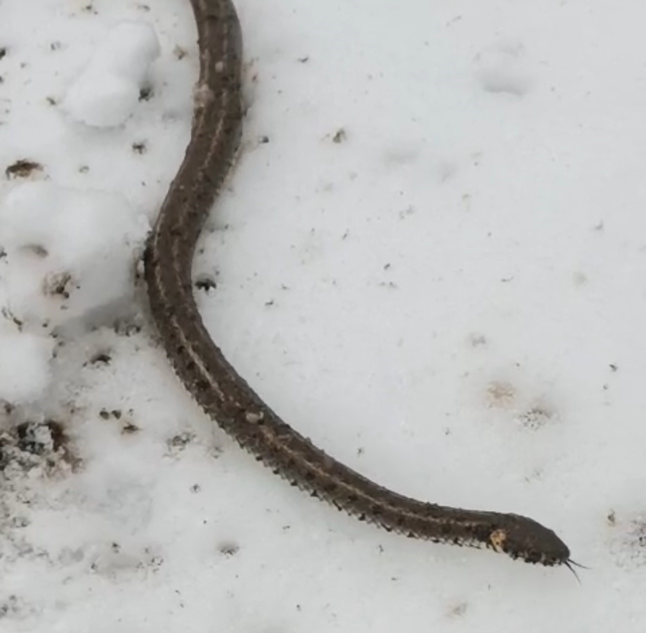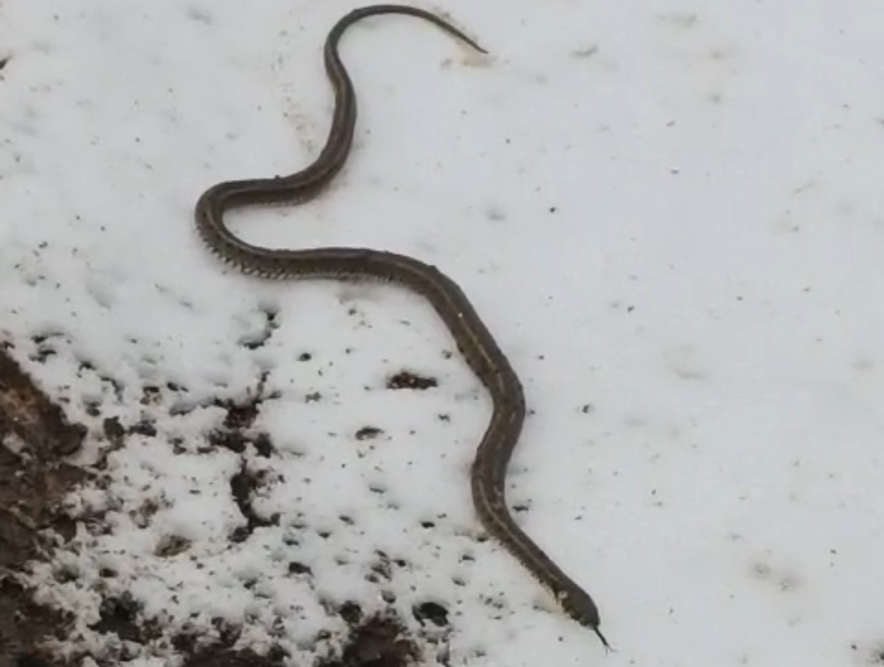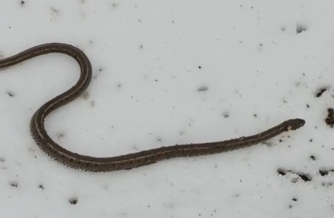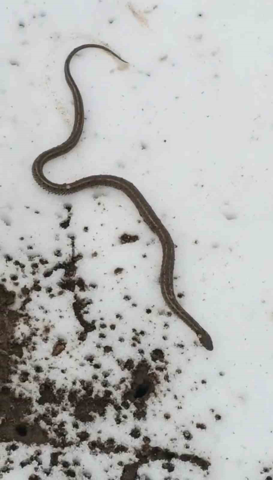 Kar üzerinde bir süre gezinen yılan, daha sonra gözden kayboldu.