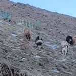 Hakkari’nin Yüksekova ilçesinde yerleşim yerine inen ayıları çoban köpekleri uzaklaştırdı.