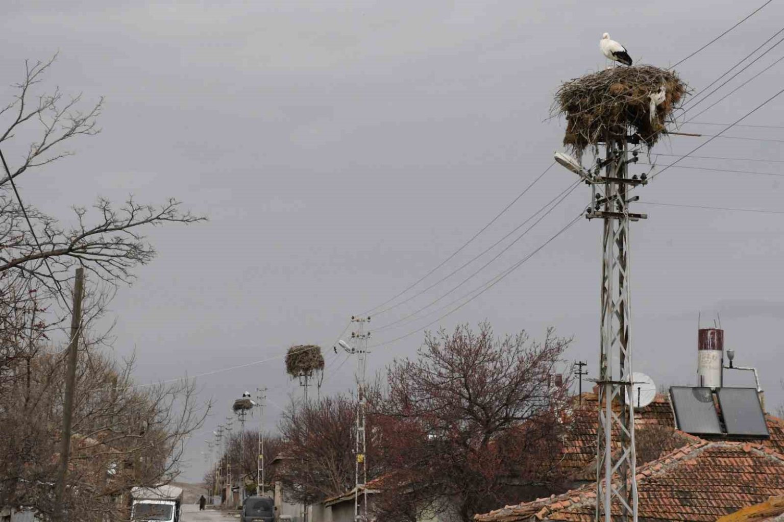 Yozgat’ta yuvalarına dönen leylekler vatandaşları sevindirdi. İlkbaharın habercisi olan leylekler köylerde ilgiyle karşılanırken, elektrik direklerindeki yuvaları ve köyde oluşturdukları görüntüler dronla görüntülendi.