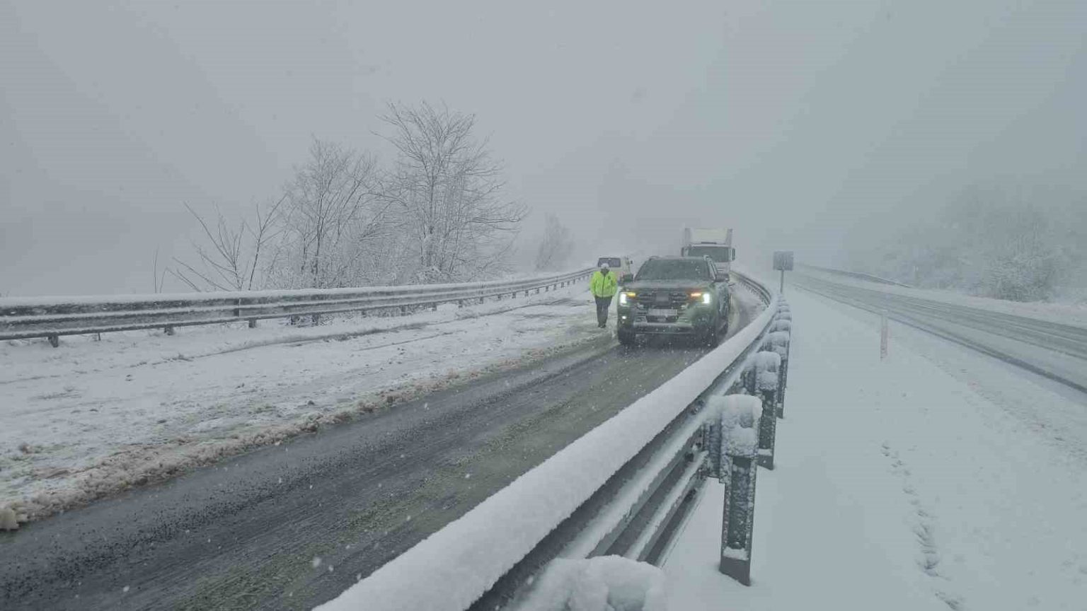 Kayganlaşan yolda ilerlemekte güçlük çeken bazı araçlar yolda kaldı. İhbar üzerine bölgeye Bölge Trafik Denetleme Şube Müdürlüğü ekipleri ile Karayolları ekipleri sevk edildi.