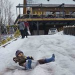 Zonguldak’ta çocuklar karda kayarak eğlendi