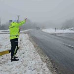 Karayolları ekipleri tuzlama ve kar küreme çalışmalarını sabahın erken saatlerinden itibaren sürdürdü.