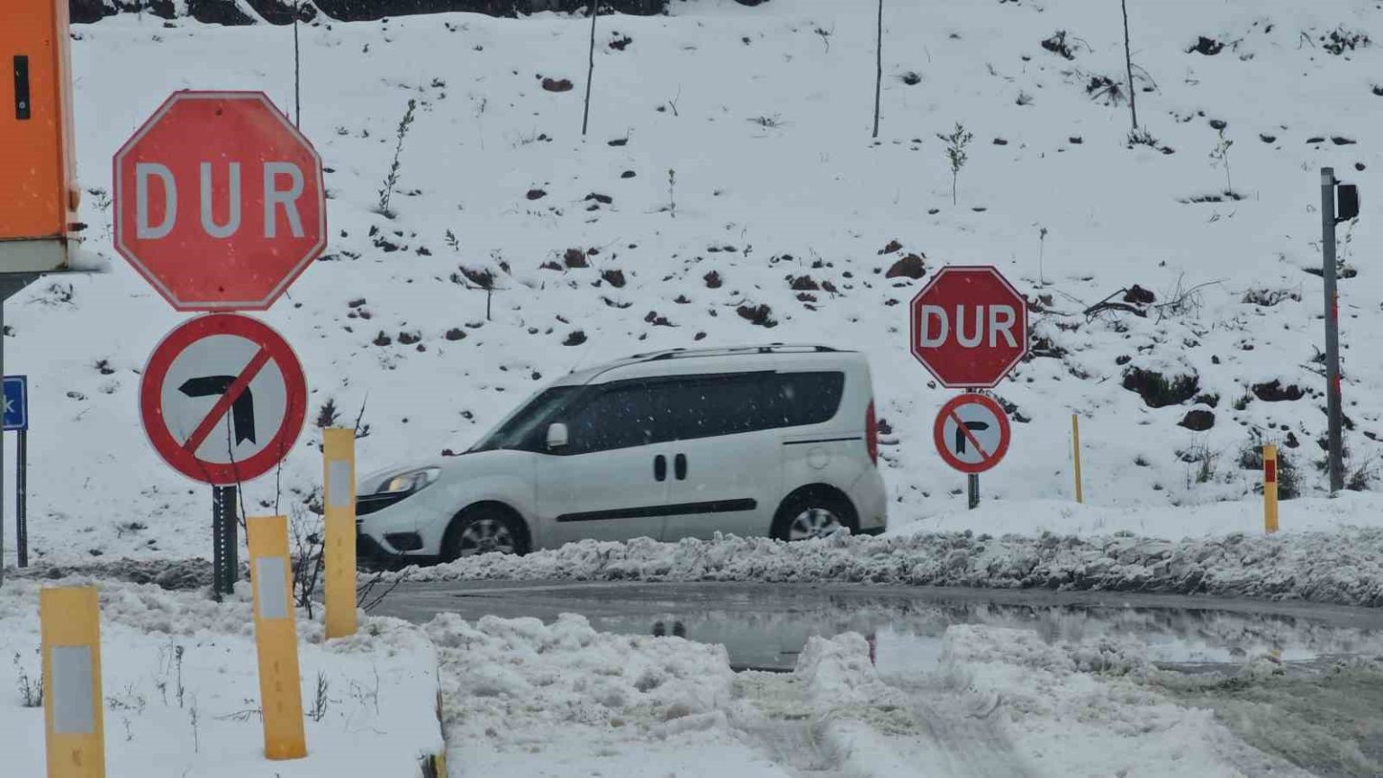 Uzun araçlar ve yaz lastiği olanların geçişine izin verilmezken İl Özel İdaresi ekipleri köylerde de karla mücadele çalışmalarını sürdürdü.