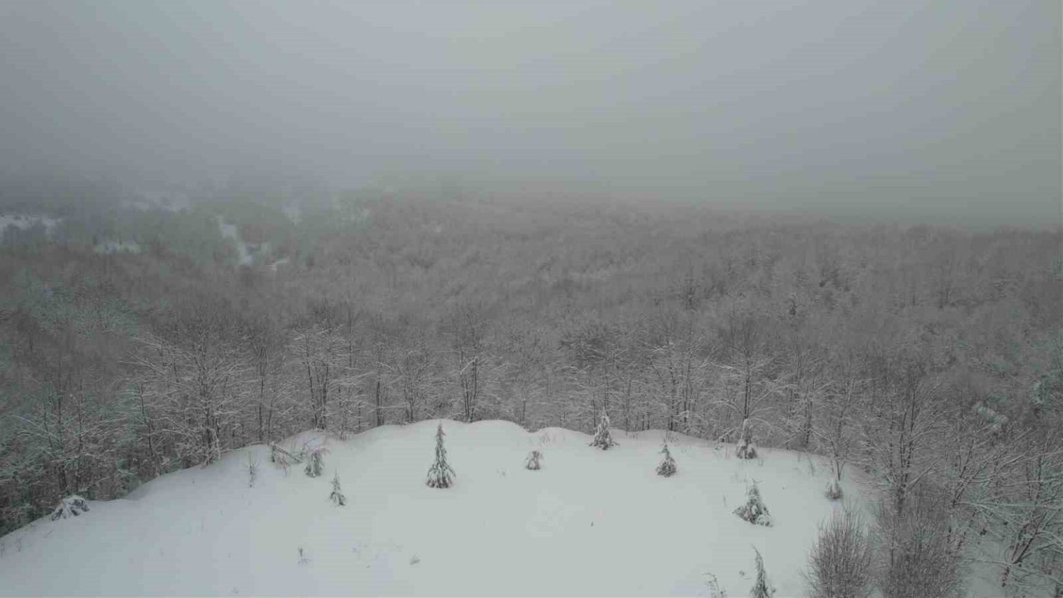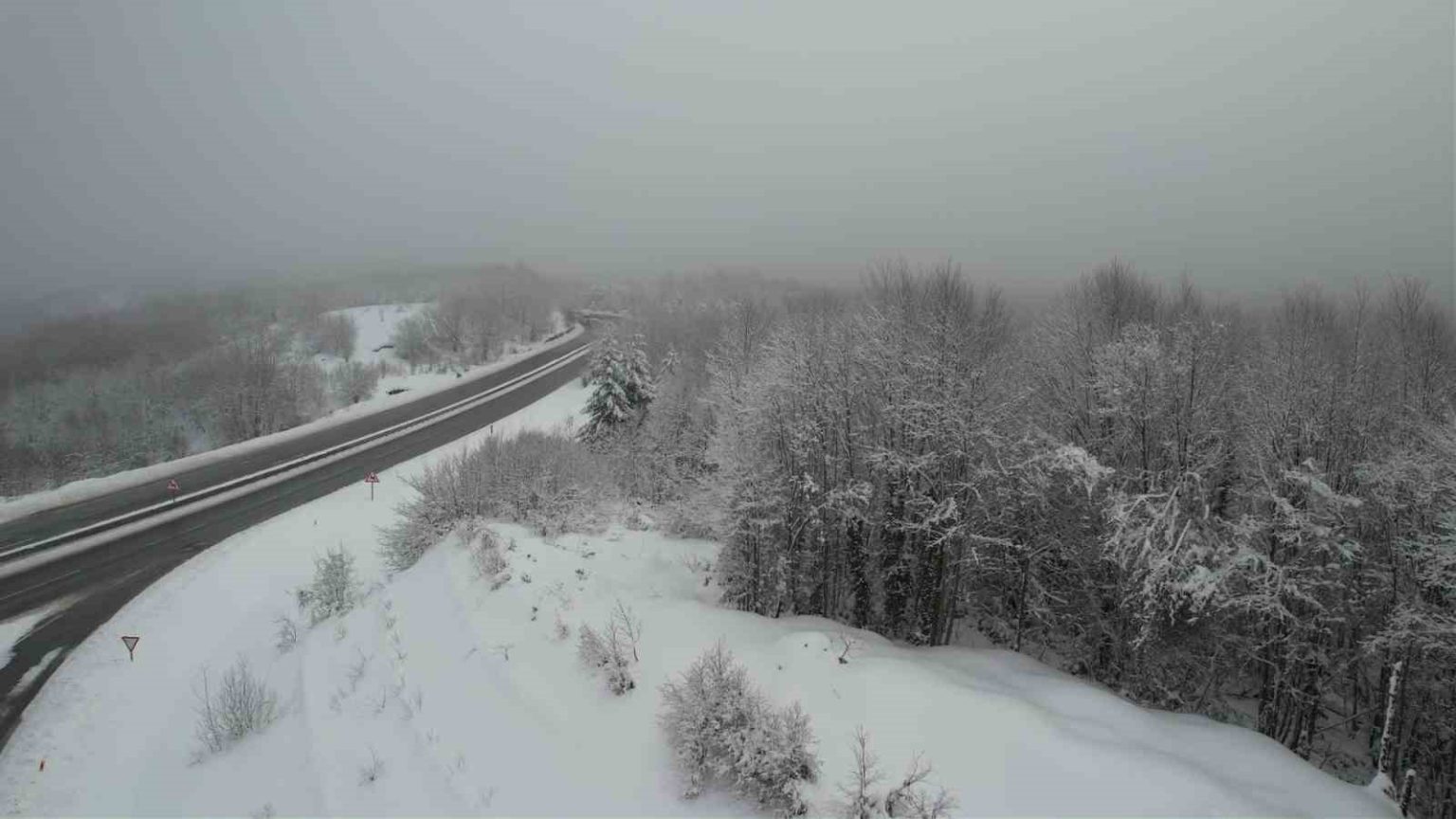 Kara yolunun son durumu dron ile havadan görüntülendi. Görüntülerde, beyaz örtüyle kaplanan yüksek kesimlerdeki trafik akışının normale dönmesi görüntülendi.