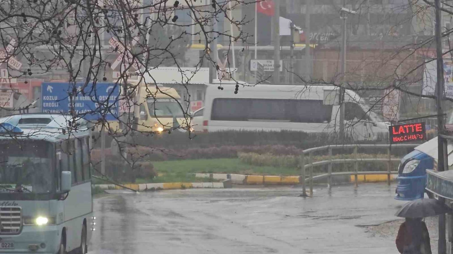 Zonguldak’ta öğle saatlerinde aniden etkisini gösteren yağış, hayatı olumsuz etkiledi. Bir anda bastıran yağmura sokakta yakalanan vatandaşlar, korunmak için kapalı alanlara ve bina girişlerine akın etti. Şemsiyesi olmayan bazı vatandaşların ise yağmur altında ıslanarak yollarına devam ettiği görüldü. Meteoroloji verilerine göre hava sıcaklığının 5 derece ölçüldüğü kentte, nem oranı yüzde 85, rüzgar hızı ise saatte 16 kilometre olarak kaydedildi. Soğuk havayla birleşen yağış nedeniyle cadde ve sokaklarda su birikintileri oluşurken, sürücüler de görüş mesafesinin düşmesiyle trafikte kontrollü seyretti.