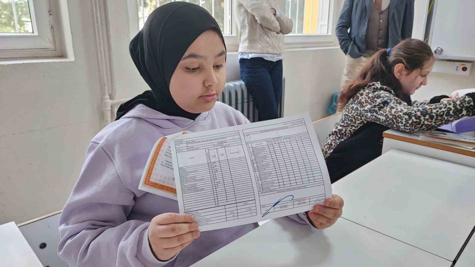 Öğrencilerden Ceren Toprak ise, “Çok mutluyum. Bu dönem güzel geçti. Notlarım çok güzel. Takdir belgesi aldım. Büyüyünce avukat ya da anaokulu öğretmeni olmak istiyorum. Çocukları çok sevdiğim için öğretmen olmak istiyorum. Avukat olmak isteme sebebim ise bütün suçluları adalete teslim etmek istiyorum. Görme engelliler bu okulda okuyabiliyorlar. Bu okul bizim için gayet güzel” ifadelerini kullandı.