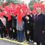 İl Milli Eğitim Müdürü Mehmet Nurettin Aras, öğretmen ve öğrencilerle bir araya gelip Türk bayrağının öneminden bahsetti.