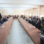 Eleşkirt programı kapsamında İl Millî Eğitim Müdürü Hasan Kökrek’e, Eğitim Müfettişleri Başkanı İbrahim Gökalp, Millî Eğitim Müdür Yardımcıları Neriman Karakoç ve Selahattin Bilgiç ile şube müdürleri eşlik etti. Heyet, Eleşkirt Kaymakamlığı toplantı salonunda İlçe Millî Eğitim Müdürü Burhan Kurt ve ilçe şube müdürlerinin katılımıyla ilçe değerlendirme toplantısı gerçekleştirdi.