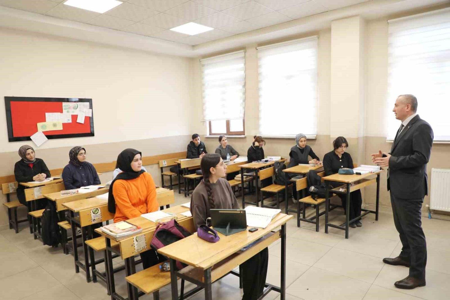 Ağrı İl Milli Eğitim Müdürü Hasan Kökrek, il merkezindeki liseleri ziyaret ederek Yükseköğretim Kurumları Sınavı’na (YKS) hazırlanan 12. sınıf öğrencilerle bir araya geldi.