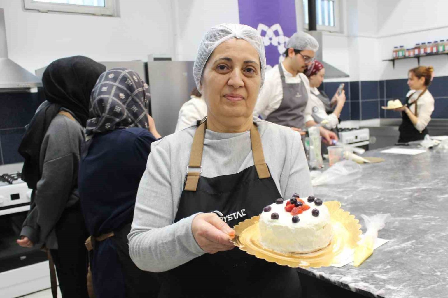 Torunu için atölyeye katılan Gülsen Güvenç, “Torunum 10 yaşında. Çok mutluyum. Ona bir şey yaptığım, sevdirebildiğim ve yedirebildiğim için mutluyum” ifadelerini kullandı.